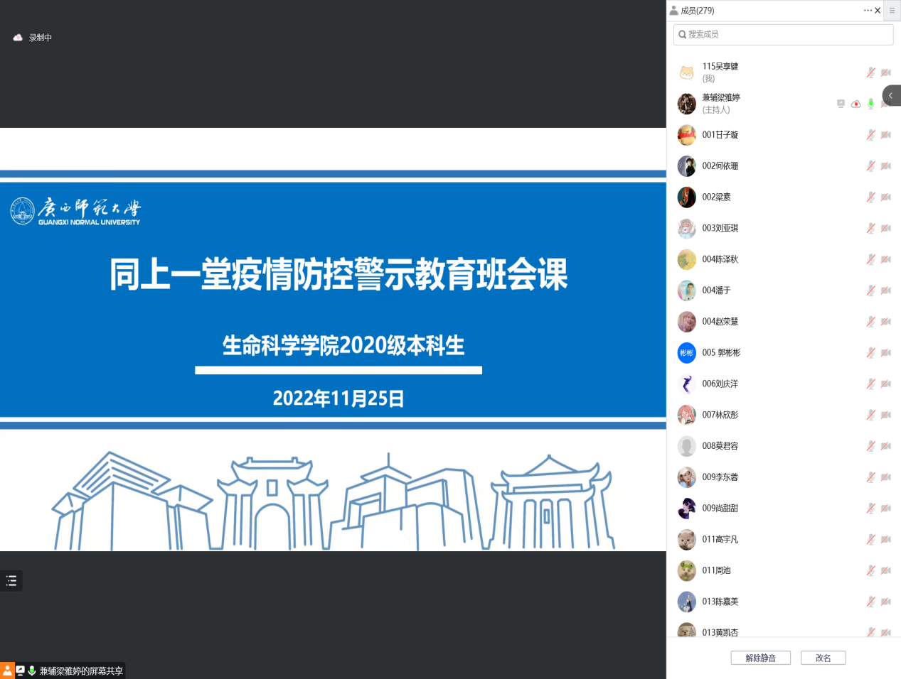 为加深同学们对防疫政策的理解,2022年11月25日,生命科学学院召开“同上一堂疫情防控警示教育班会课”活动,会议由生命科学学院各年级辅导员主持,生命科学学院全体学生共同参与。