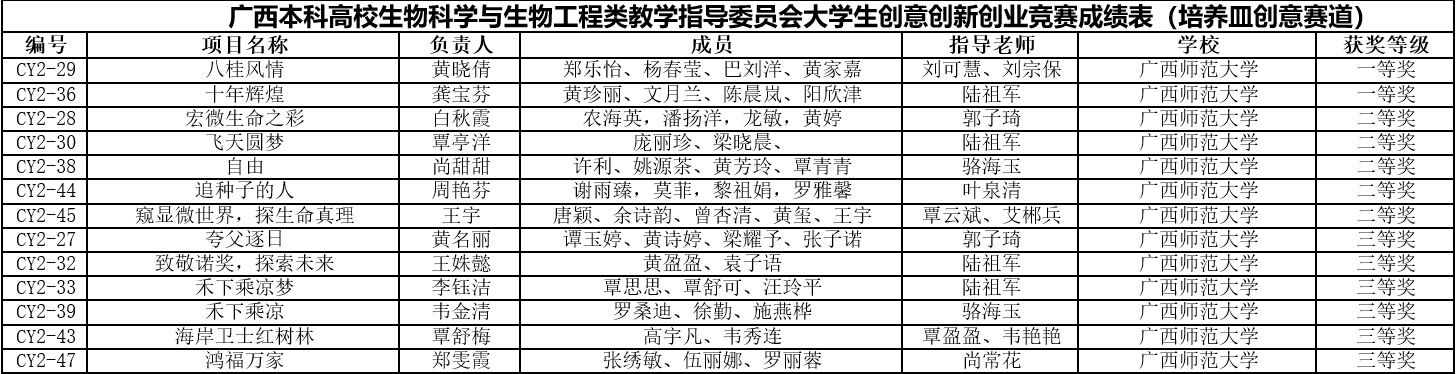 【喜报】我院学子在广西本科高校生物科学与生物工程类教学指导委员会第四届大学生创意、创新和创业竞赛中再创佳绩