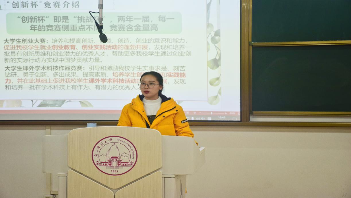 宣讲会上,学院创新创业协会会长分别从“创新杯”的含义、“创新杯”的竞赛要求和参赛注意事项等方面向同学们介绍了“创新杯”竞赛的具体内容,进一步加深同学们对“创新杯”竞赛内容及其他要求的认识与了解,并激励同学们积极参赛,提高自身科学创新素养。