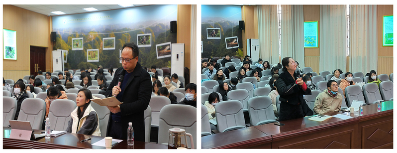 报告会上,唐志尧教授从邻体相互作用与BEF关系、邻体相互作用的尺度依赖、邻体相互作用与树木生长和邻体相互作用与水分利用等4个方面展开了介绍,并分享了其团队研究的主要学术成果。随后,我室师生积极向唐志尧教授请教实验设置与物种选择的依据,现场讨论氛围十分活跃。