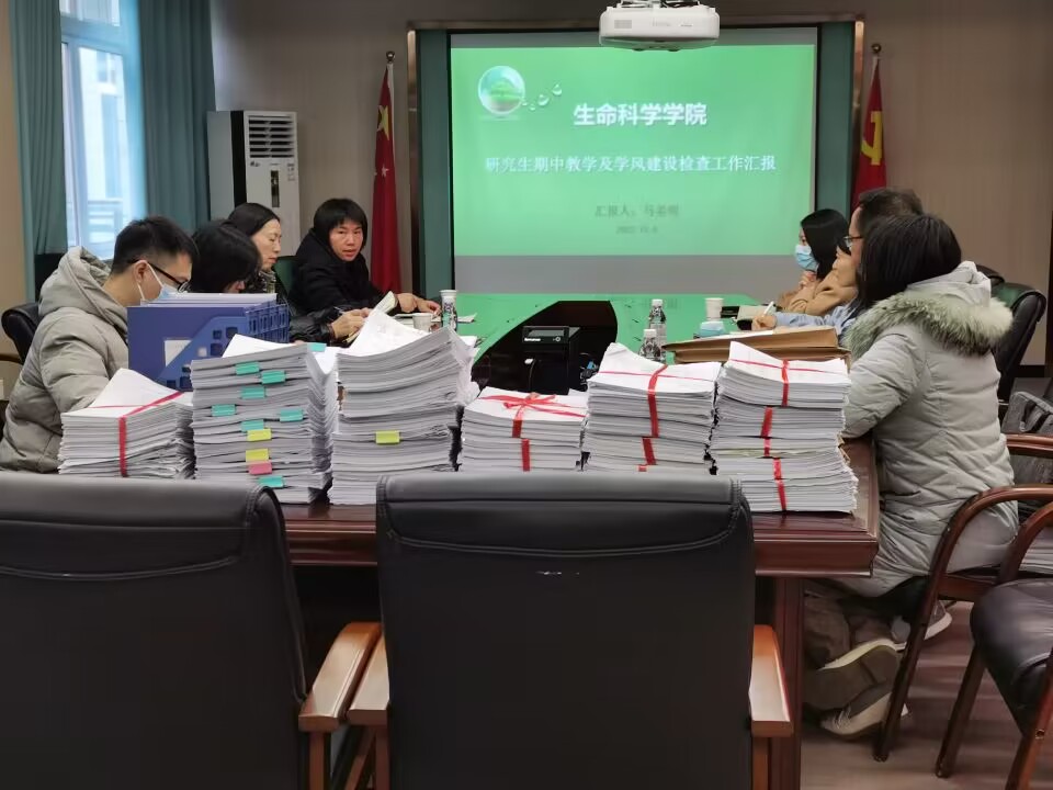 根据广西师范大学研究生院对研究生中期教学检查工作的相关要求,生命科学学院对研究生教学档案材料进行了系统整理、归档,并于2022年12月6日下午雁山校区理科组团224会议室接受研究生学院教学检查组的督查。研究生院教学检查组成员及生科院研究生教学、辅导工作管理人员参加了本次会议。