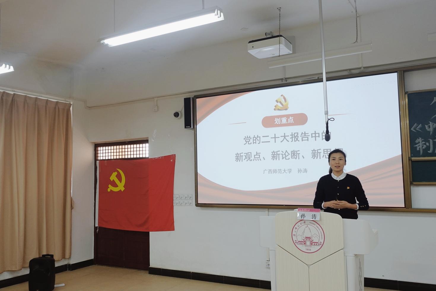 为深入学习贯彻党的二十大精神,引领新时代青年自信自强、奋发向上,12月11日,生命科学学院组织开展“党的二十大报告中的新观点、新论断、新思想”专题党课。本次党课由党委书记孙涛主讲,生命科学学院第三十七期入党积极分子培训班(秋季班)全体成员参加。