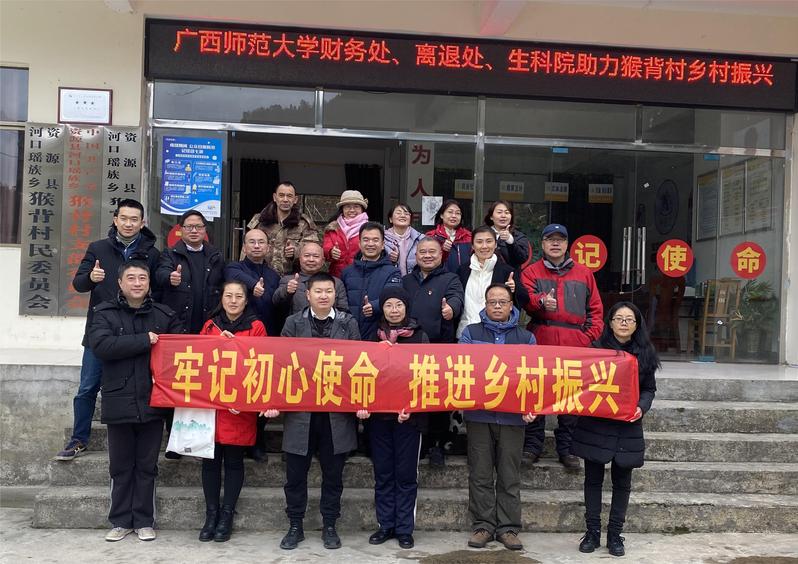 为深入学习贯彻党的二十大精神,赋能乡村振兴发展,1月15日,学院党委领导班子联合离退休党委在职党支部、财务处党支部,组织自治区科技特派员邓荫伟教授等专家一行到资源县猴背村开展“牢记初心使命,推进乡村振兴”主题党日活动。