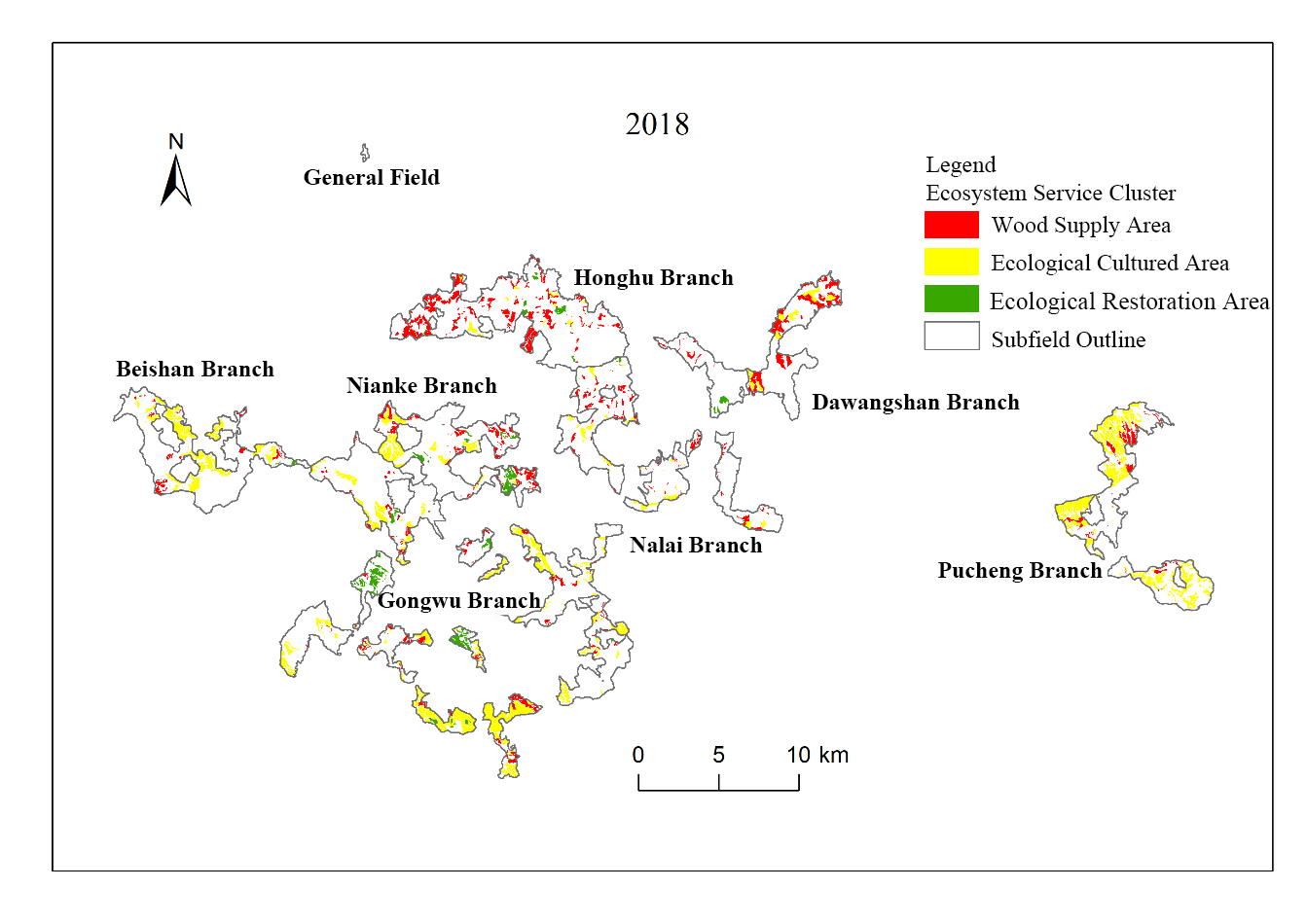 图 2 广西派阳山林场马尾松人工林生态系统服务簇空间分布图