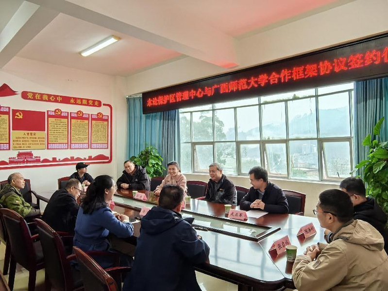 2023年2月21日,珍稀濒危动植物生态与环境保护教育部重点实验室与广西木论国家级自然保护区顺利举行“珍稀濒危动植物生态与环境保护教育部重点实验室野生动植物研究基地”和“广西珍稀濒危动物生态学重点实验室野生动物研究基地”揭牌仪式。生命科学学院院长武正军、生命科学学院党委书记孙涛、教育部重点实验室常务副主任周岐海等一行7人与广西木论国家级自然保区管理中心孙瑞主任等人参加座谈会及揭牌仪式。