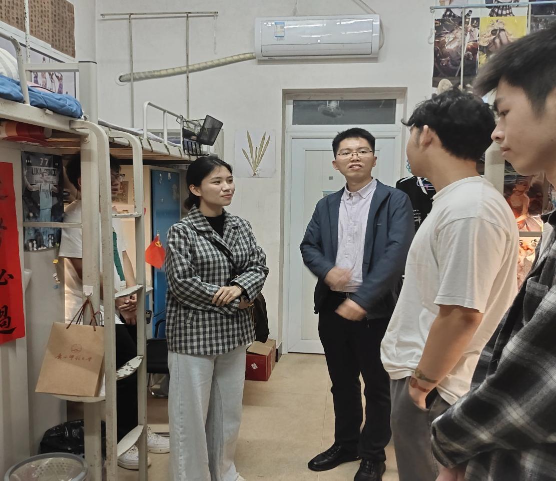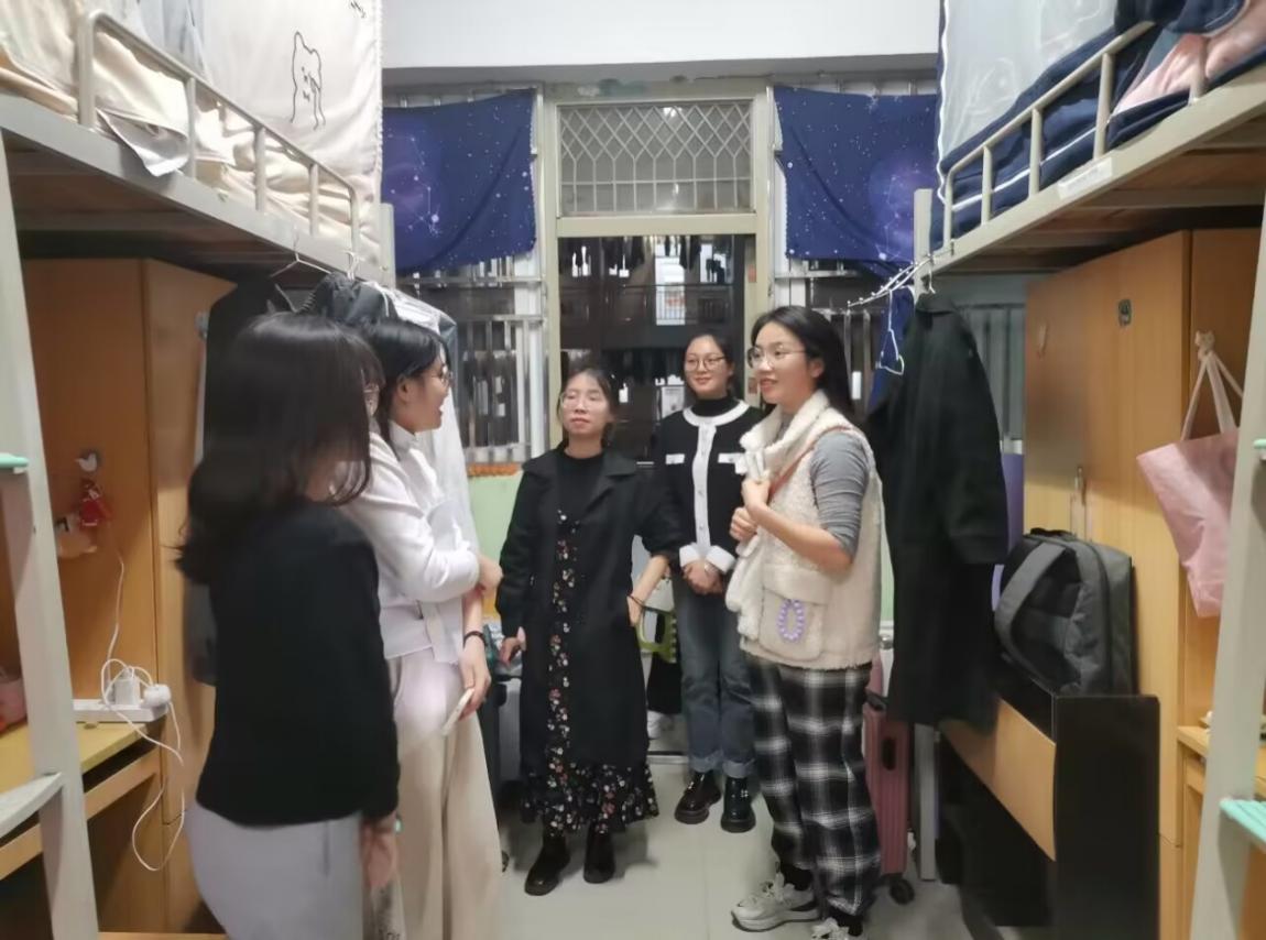 本次宿舍走访主要是关心同学们各方面的需求并排查寝室安全问题。走访过程中,老师们就学风建设、教育实习、就业情况、考研筹备、心理健康等方面进行指导和关心,并对寝室内是否有乱拉电线、违规使用大功率电器等现象进行排查。
