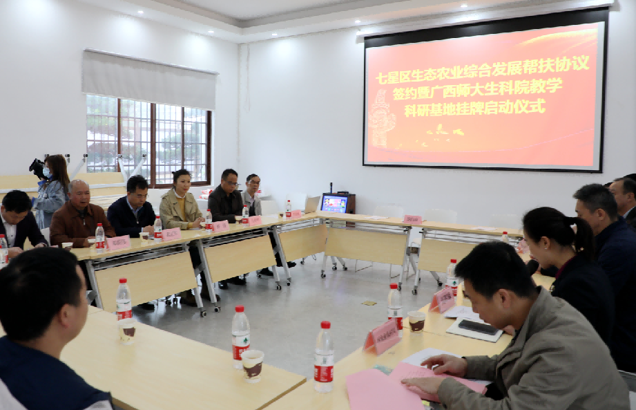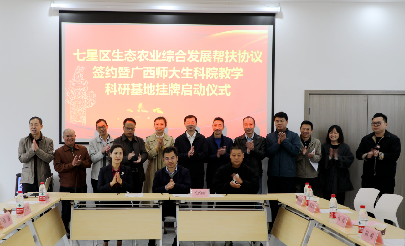 学院与七星区通过前期交流互访,此次签订合作协议,其目的是通过校地企合作,发挥政府在资源协调,企业应用市场与学校人力资源与科技优势,加强学院与七星区在教学、科研、乡村振兴、生态保护、农林资源培育与利用、自然教育领域等方面的合作。致力于创造宜业、宜居、宜乐、宜游的良好环境,推动党的二十大精神和习近平总书记对广西“五个更大”重要要求在七星落地生根。