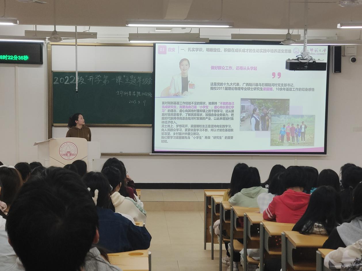 为深入贯彻习近平新时代中国特色社会主义思想和党的二十大精神,推进党建工作与立德树人相融合。近期,生命科学学院以学生开学返校为契机,组织开展了“开学第一课,启航新征程”主题系列年级会,会议由各年级辅导员主讲,各年级学生共同参与。