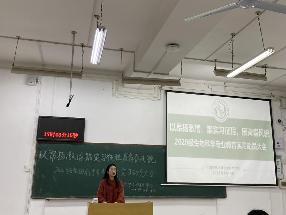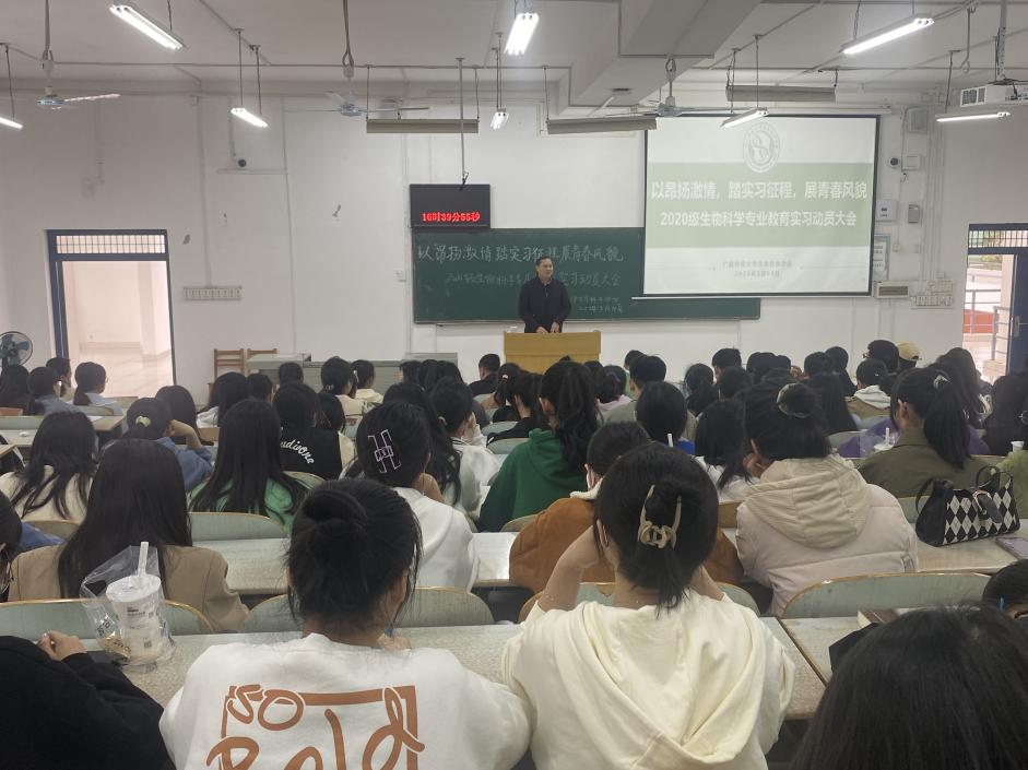 据悉,生命科学学院高度重视学生教育实习相关工作,制定详细实习计划与方案,并积极联系13所实力雄厚的实习学校、选派12名优秀的实习指导老师,为本次教育实习提供了充裕的保障。本次动员大会让同学们充分认识到实习的必要性和重要性,明确了实习的任务和要求,为顺利完成实习任务奠定了良好的基础。