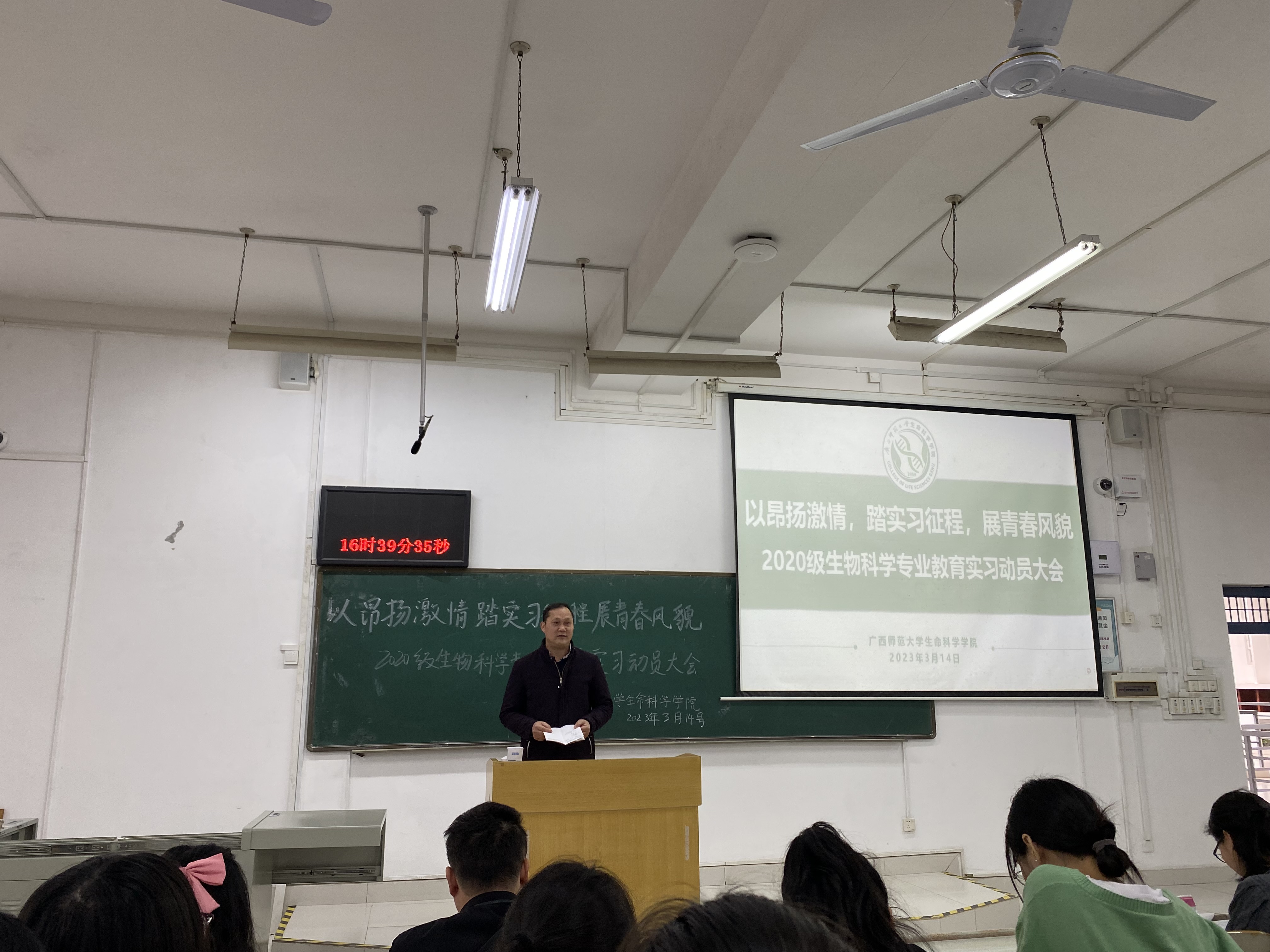 为保证教育实习工作有序开展,全面提高学生实习积极性,生命科学学院于2023年3月14日下午在雁山文四区205教室成功举办2020级生物科学专业教育实习动员大会。学院党委副书记卢洁、副院长李友邦、教育实习指导教师代表、2020级专兼职辅导员以及2020级生物科学专业215名本科生参加本次动员会。
