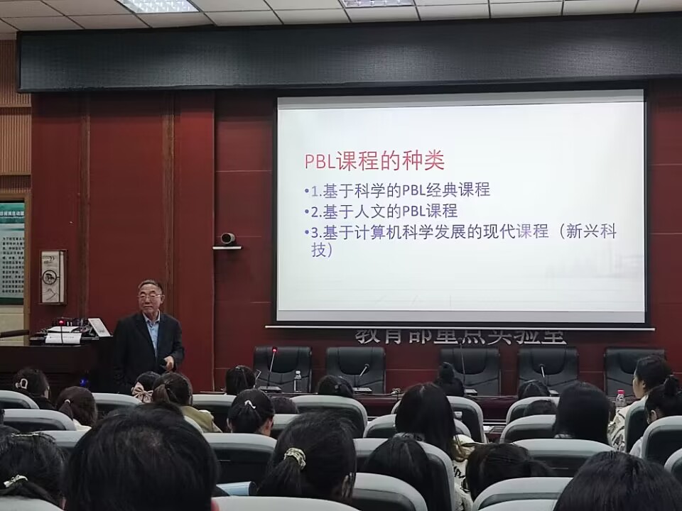 会上,张海银老师围绕中小学PBL课程以及PBL的用途、种类等方面展开详细解读,针对问题式学习和项目式学习的对比发表了自己的看法。全体同学认真聆听讲座,深刻领悟PBL的六个主要特征、跨学科学习的发展趋势、stem教育的内涵,并表示在未来的教学中不断学习和践行项目式方法。最后,张海银老师鼓励同学们应根据自己最擅长的学科方向进行着重发展,坚守初心,矢志不移地向前走。