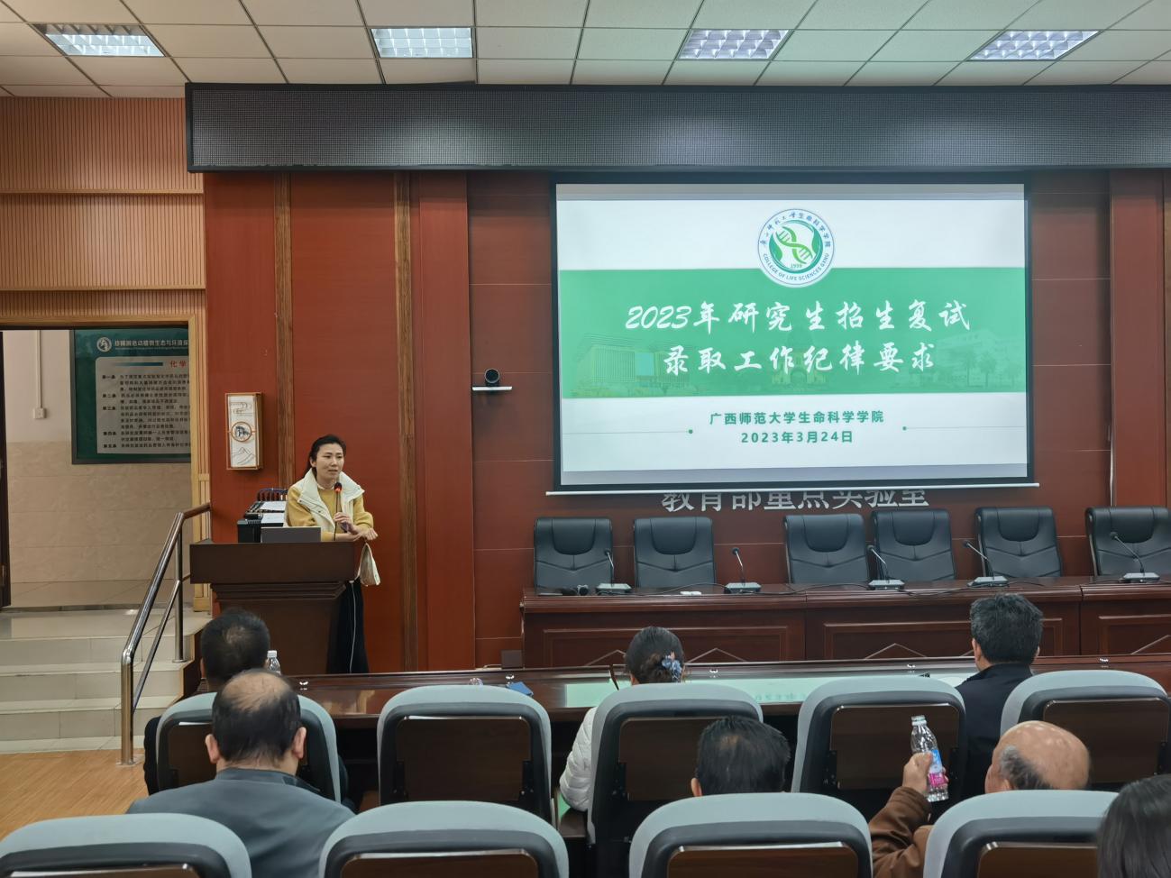 3月24日,生命科学学院2023年硕士研究生招生复试录取工作布置会议在雁山校区伯康楼112报告厅顺利召开,会议由学院分管研究生教育工作负责人主持,研究生招生工作领导小组、监督小组、复试小组成员、相关考务人员等近30人参加会议。