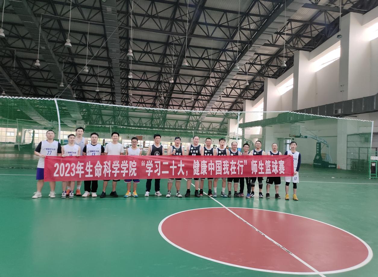 为贯彻落实党的二十大提出的促进群众体育和竞技体育全面发展加快建设体育强国要求,展现我院师生健康、和谐、积极进取的精神风貌生命科学学院于42日在广西师范大学训练馆二楼成功举办了生芽杯师生篮球联谊赛生命科学学院教师篮球队和本院研究生篮球队两支队伍参赛