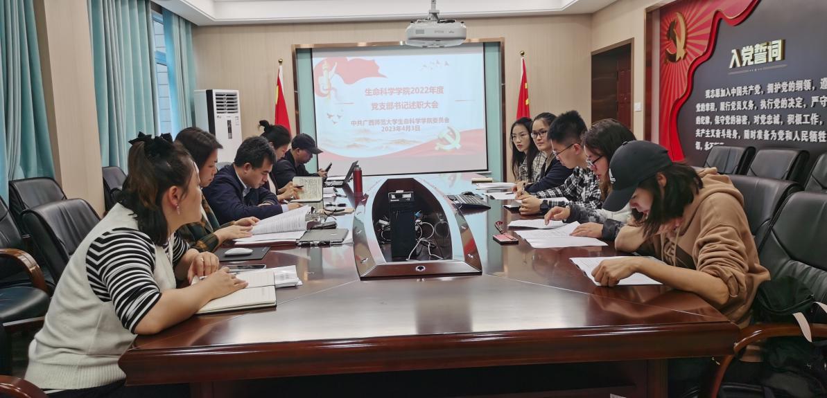 为深入学习贯彻党的二十大精神,认真落实新时代党的建设总要求,4月3日上午,生命科学学院党支部书记述职评议会议在雁山校区学院党员之家召开,学院党委委员、纪委委员、领导班子、各党支部书记参加了本次会议。