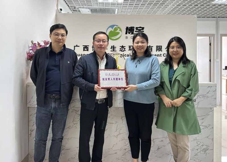 为进一步扩宽就业市场,发挥企业资源辐射作用,生命科学学院相关负责人前往广西漫越环保科技有限公司、广西博宇生态环境有限公司开展访企拓岗活动,并召开就业专题座谈会,会上,双方负责人就校企合作、人才培养、实践基地、资源共享、实习实训等方面达成合作共识,并分别同广西漫越环保科技有限公司、广西博宇生态环境有限公司签订《广西师范大学就业创业战略合作协议》,并举行广西师范大学就业创业共建单位授牌仪式,共同构建高质量人才培养体系,促进更深层次互动。