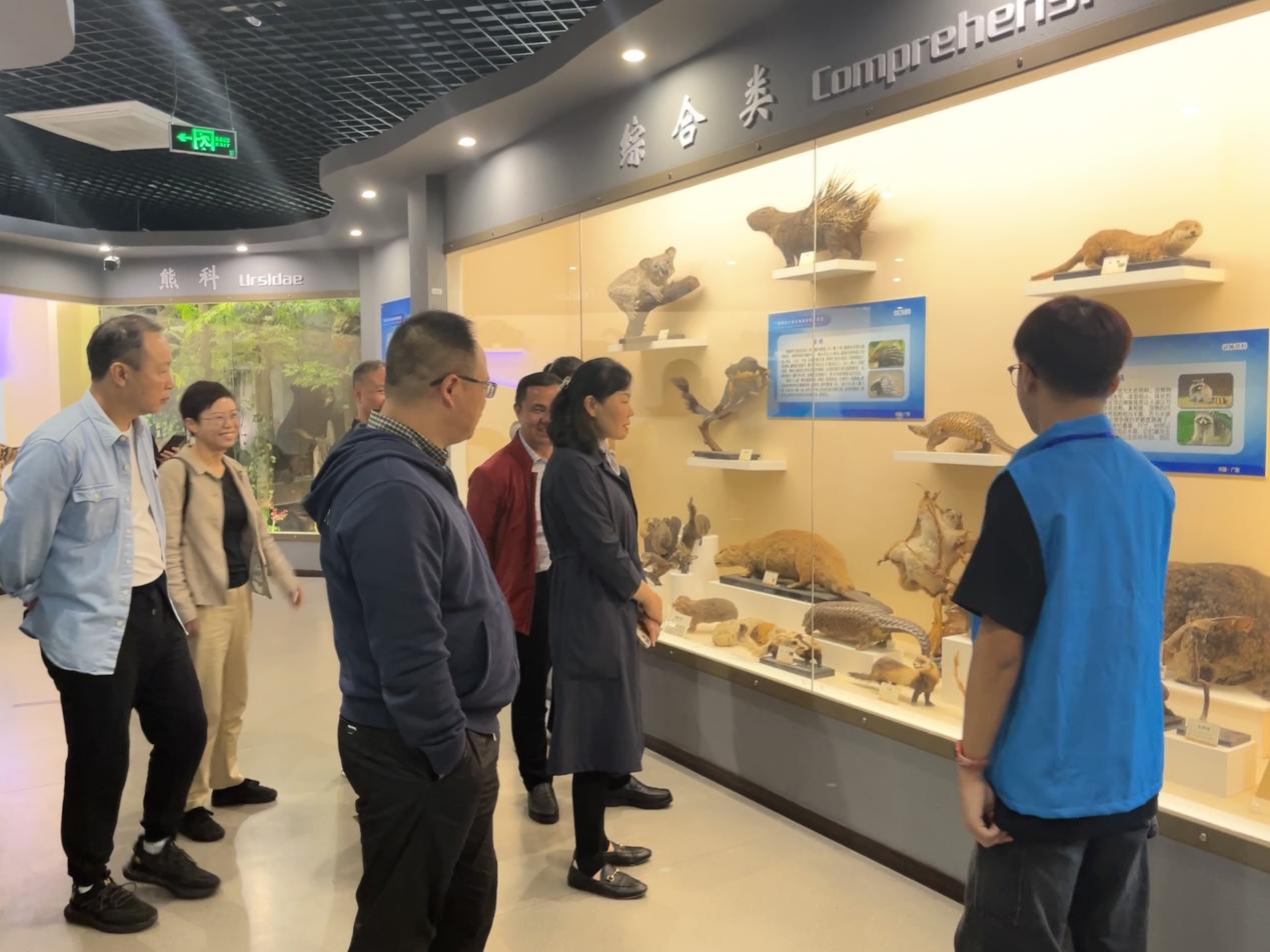 张永红副主任一行首先参观了研究院和重点实验室,随后双方进行了座谈。研究院院长、重点实验室主任马姜明教授对张永红副主任一行的到访表示热烈欢迎,并介绍了研究院和重点实验室的发展历程和取得的成效。张永红副主任介绍了本次访问交流内容和目的,希望以本次交流为契机,进一步深化合作交流。桂林市莲花源生态农业旅游发展有限公司董事长仇秀武介绍了公司的基本情况、目前的业态及存在的技术难题。双方与会人员在生态农业、生态旅游、生态规划、自然教育联动等方面展开热烈探讨。座谈结束后,张永红副主任一行参观了生物多样性博物馆。