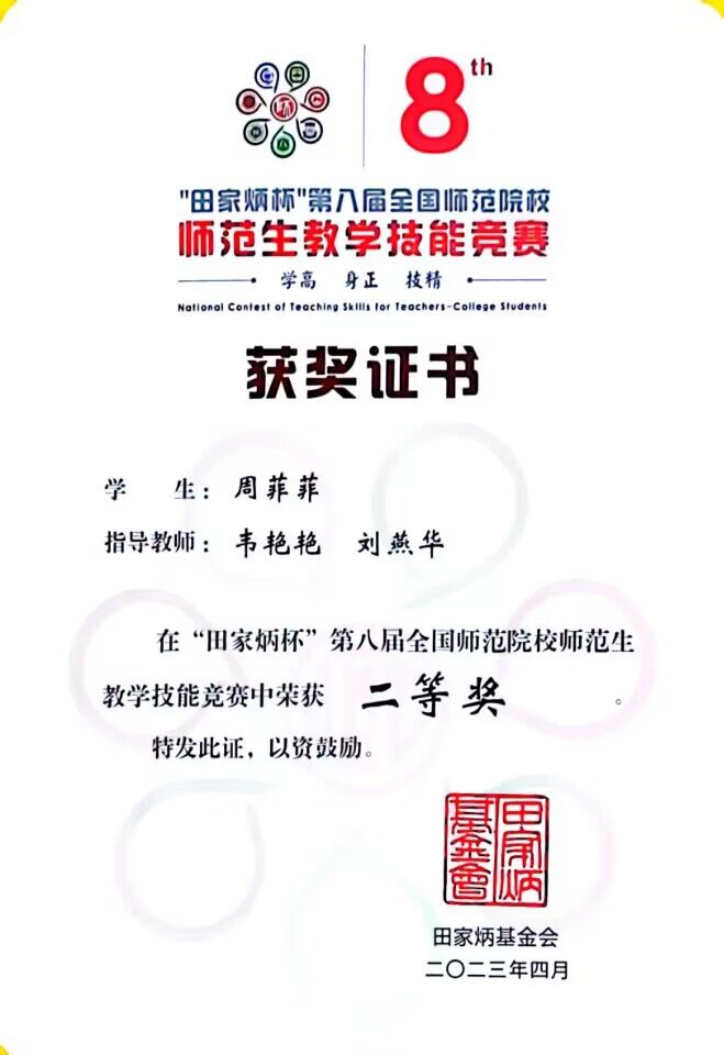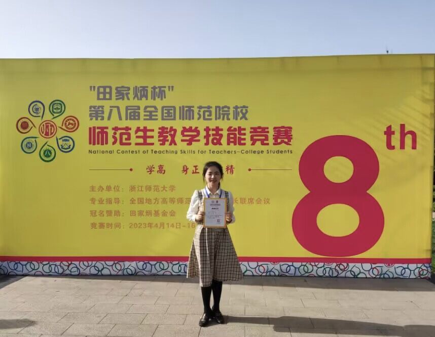 4月16日,在浙江师范大学举办的“田家炳杯”第八届全国师范院校师范生教学技能竞赛全国总决赛圆满结束。我院2020级生物科学专业周菲菲(指导老师:韦艳艳、刘燕华)荣获生物组赛道二等奖。