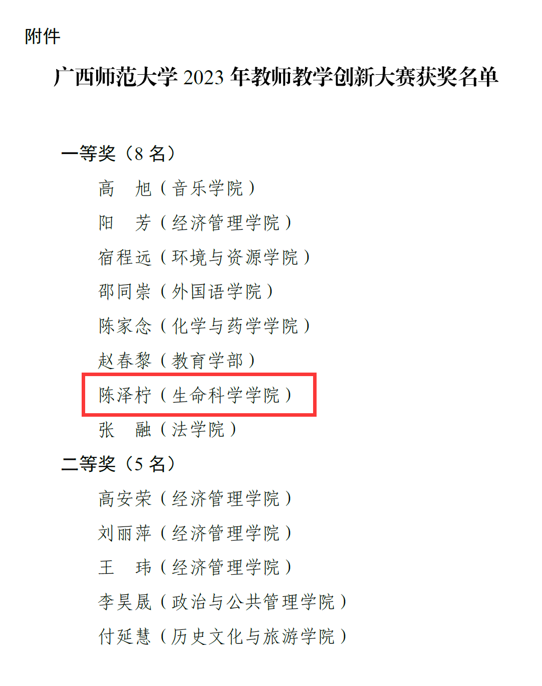 为做好自治区第三届高校教师教学创新大赛的组织推荐工作,推动教学创新,我校近期举办2023年教师教学创新大赛,我院陈泽柠博士荣获“一等奖”。