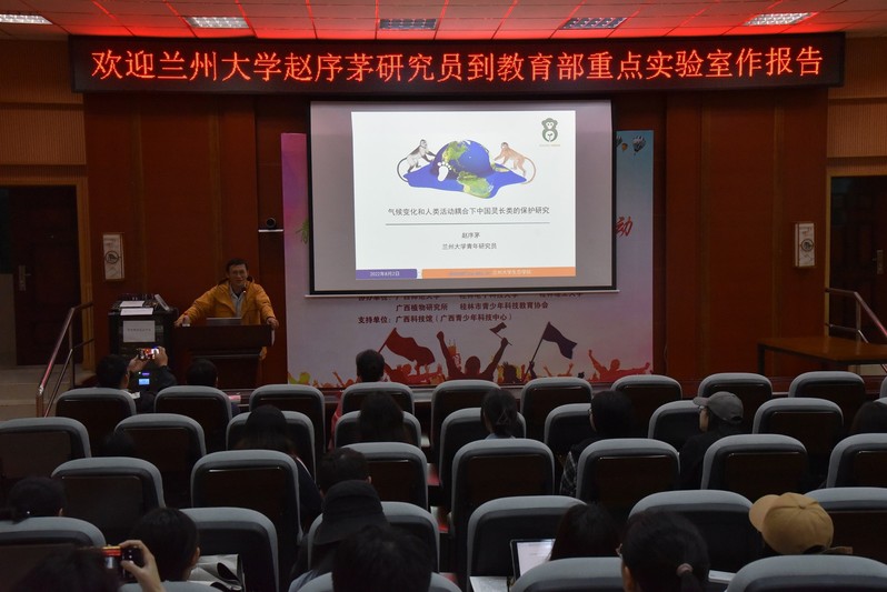 报告会上,赵老师首先科普了非人灵长类与人类高度相似的方方面面,加深大家对灵长类动物的了解,接下来介绍国内其他研究人员在中国灵长类方面的研究工作,然后介绍自己在中国灵长类方面的各项研究。最后赵老师分享了自己坎坷的求学经历,对求学和科研工作给出了几点建议,与现场师生展开了热烈的互动。