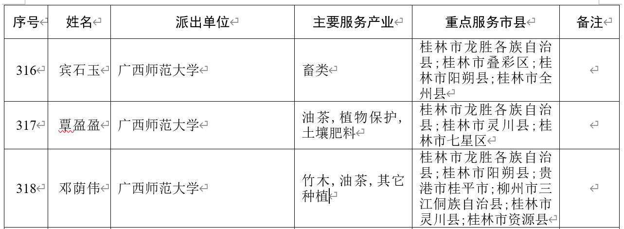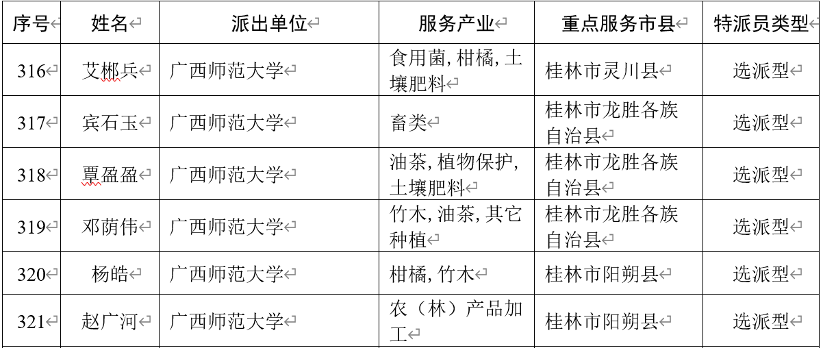 近日,广西壮族自治区科学技术厅公布《自治区乡村科技特派员工作协调机制办公室关于2023—2024年乡村科技特派员拟选派人员的公示》及《自治区科技厅关于印发2023年度“三区”科技人员广西选派名单的通知》(桂科农字〔2023〕26号)文件。我院艾郴兵、宾石玉、覃盈盈、邓荫伟、杨皓、赵广河6位教师入选2023—2024年自治区乡村科技特派员拟选派人员,宾石玉、覃盈盈、邓荫伟3位教师入选2023年度广西“三区”科技人员。
