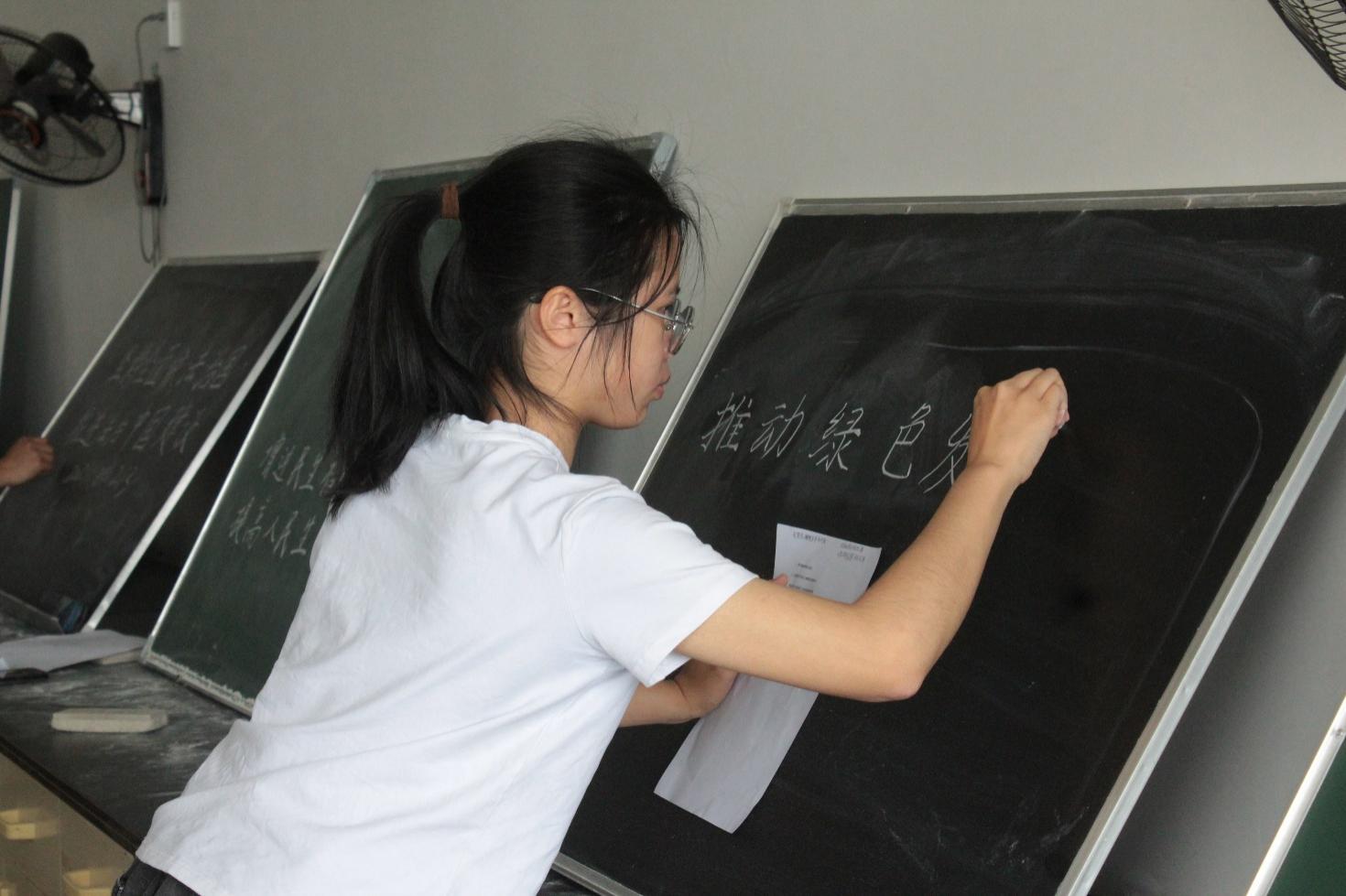 “笔尖书风流”,书写能力是教师的基本素养,本次比赛的书写内容由参赛选手从《2023年三字一话大赛“三字”书写内容》中选取。比赛现场,可以看到参赛选手们宣纸平铺,毛笔沾墨,于其之上有力地落下一笔一划,字态笔锋偏出;黑板竖直,粉笔紧握,张弛有度的浮动后,一个个整洁有边的方块字便创造出;钢笔悦动于白纸之上,一笔一划,青隽有力。在普通话比赛中,参赛选手们从《党史故事100讲》中抽签选取朗读内容,并以精神饱满的姿态铿锵有力、抑扬顿挫诵读党史故事,从选手们成长需求出发,鉴往知来,把党史这本最有说服力的教科书传播出去。