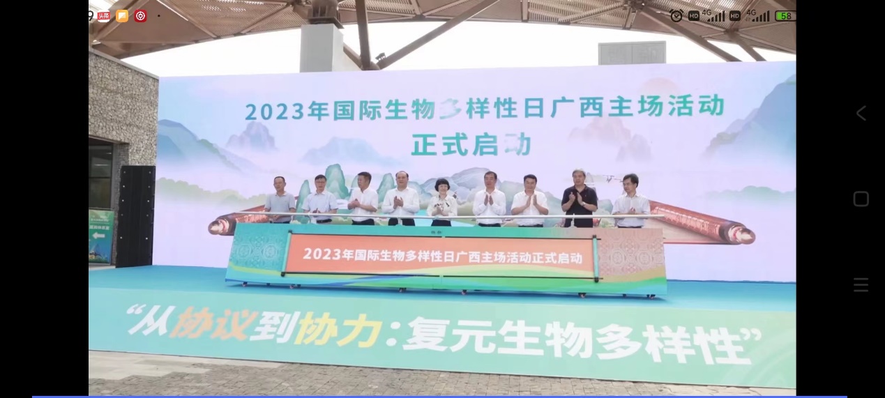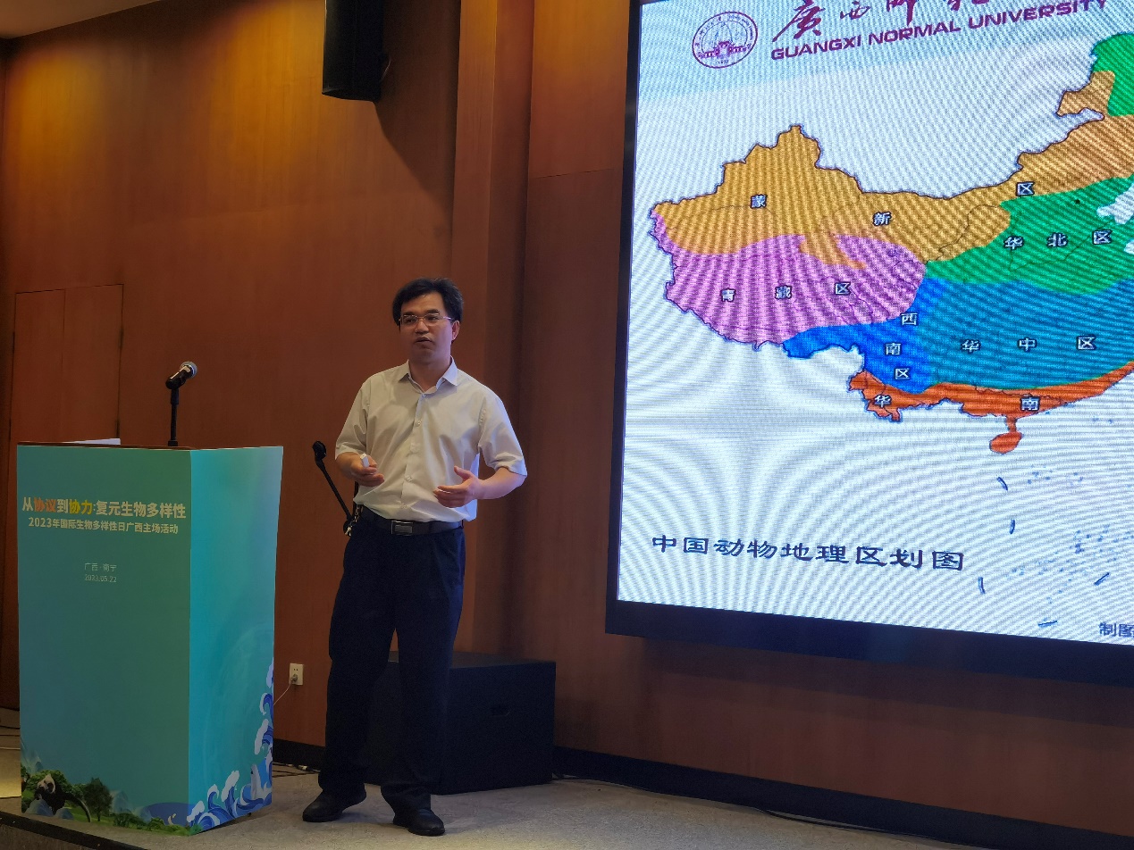 2023年5月22日上午,由广西壮族自治区人民政府指导,广西壮族自治区生态环境厅、南宁市人民政府、广西壮族自治区林业局以及广西壮族自治区海洋局共同主办的“从协议到协力:复元生物多样性‘2023年国际生物多样性日广西主场活动’”在南宁市园博园举行。自治区副主席眭国华、生态环境厅厅长陈亮等领导出席活动并致辞,我院院长武正军教授作为特邀嘉宾参加了开幕式,并与参加本次活动的有关领导和嘉宾共同启动了本次活动。在随后的主题论坛中,武正军教授做了题为“广西两栖爬行动物多样性”的主旨报告。自治区生态环境厅、林业局、海洋局,南宁市政府等相关部门代表和区内外专家以及市民群众共200多人参加了开幕式、主题论坛、公众宣传等环节活动。
