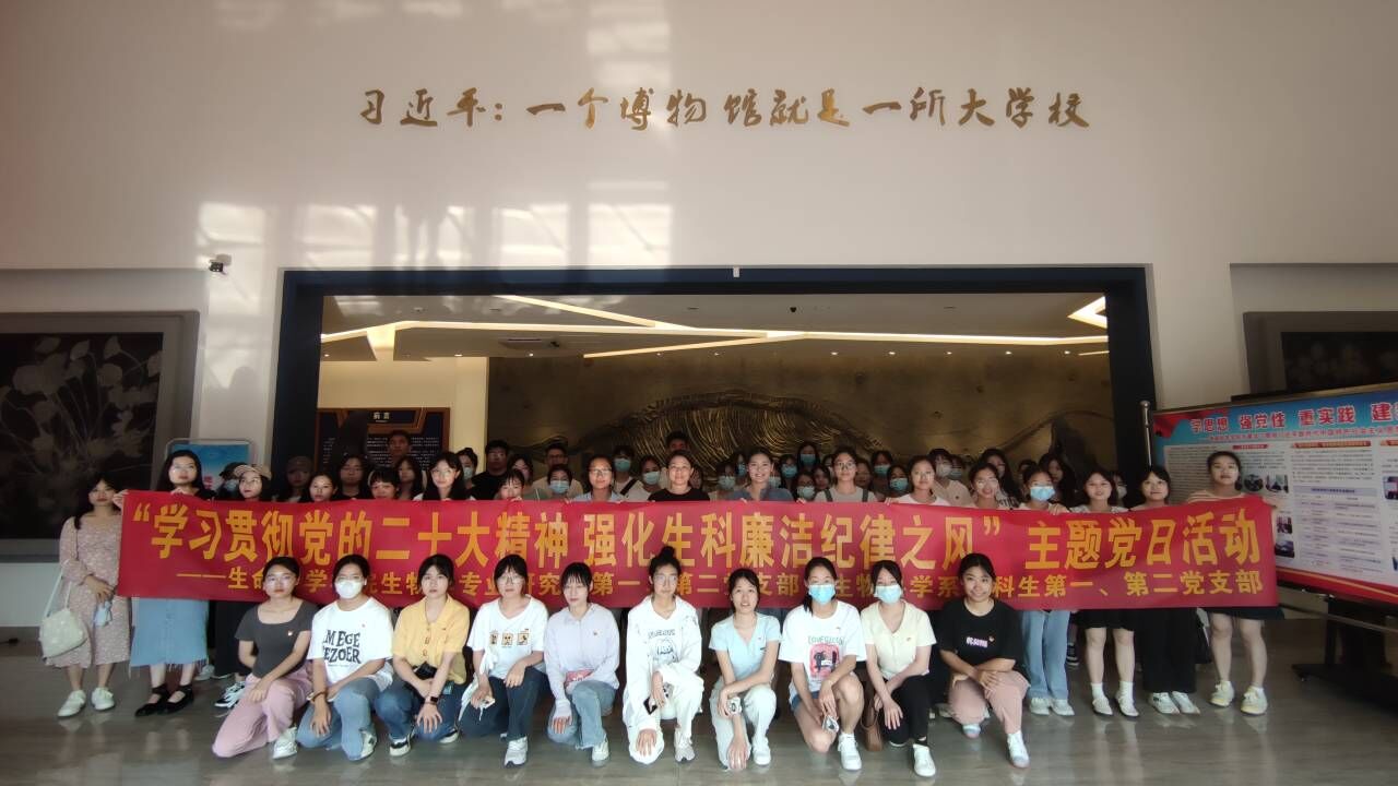 为深入学习贯彻党的二十大精神,一刻不停推进全面从严治党,抓实抓紧抓好党风廉政建设,推动清廉学院建设,5月19日,生物科学系本科生第一、第二党支部联合生物学专业研究生第一、第二党支部紧紧结合学习贯彻习近平新时代中国特色社会主义思想主题教育,开展“学习贯彻党的二十大精神,强化生科廉洁纪律之风”主题党日活动,生命科学学院党委副书记、生物科学系本科生第一党支部书记卢洁老师,生命科学学院团委书记、生技生态系本科生党支部书记黄倩老师、生物学专业研究生第一党支部书记杨盼宇老师、生物学专业研究生第二党支部书记秦丽芳老师、生物科学系本科生第二党支部书记董静怡老师与各党支部同志共同参与。