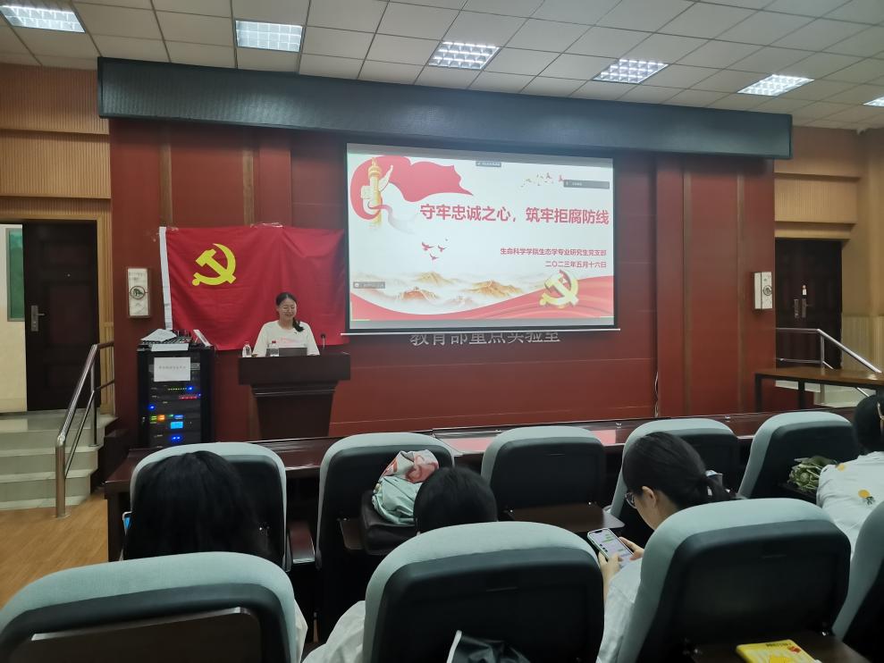 廉洁修身乃齐家之始,治国之源,平天下之基。为响应习近平总书记在党的二十大报告中“加强新时代廉洁文化建设,教育引导广大党员、干部增强不想腐的自觉”的内容精神。5月16日,生命科学学院生态学专业研究生党支部于伯康楼112报告厅顺利开展“思廉教育·倡廉实践”主题党日活动,生态学专业研究生党支部全体同志参加。