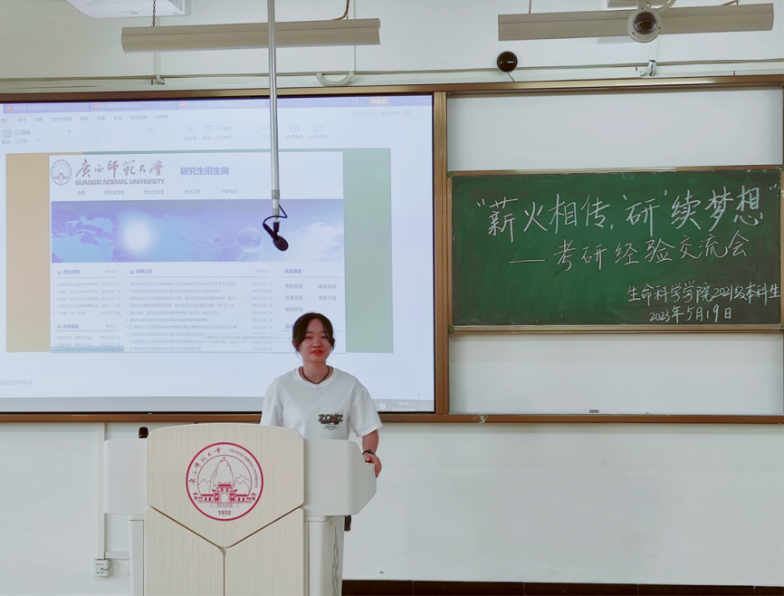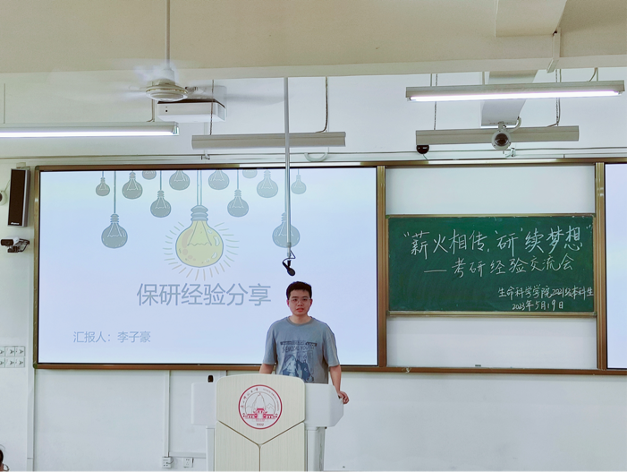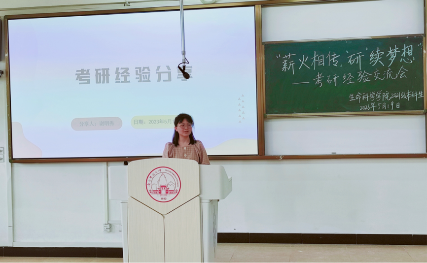 为加强学院学风建设,进一步提高同学们对研究生入学考试认识,明确考研目标,掌握考研技巧。2023年5月19日,生命科学学院2021级本科生于理科楼四区教室成功开展“薪火相传,‘研’续梦想”考研经验交流会。本次会议由兼职辅导员李洁师姐主持,2021级本科生共同参与。