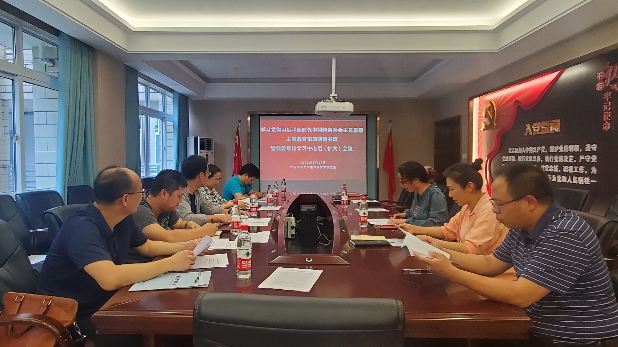 5月17日,生命科学学院在广西师范大学雁山校区厚藩楼党员之家召开党委理论学习中心组(扩大)第二次集中学习会议。会议由学院党委书记孙涛主持,党政领导班子、党委委员、纪委委员、教研室主任、教工党支部书记、教师代表等20余人参会。