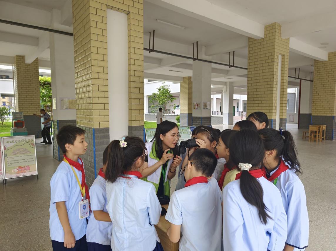 本次科普活动向学生展示昆虫标本、贝壳、鸟类邮票以及自然科学画等展品,并教会学生掌握使用望远镜技能。活动期间,学生们仔细观察展示昆虫标本、贝壳、鸟类邮票以及自然科学画,志愿者详细为学生讲解动、植物生活习性、特点、属类、栖息地等知识,现场学习氛围浓厚。志愿者用通俗易懂的方式向学生讲解望远镜使用方式,使学生们学会使用望远镜,让学生直观感受科学的神奇奥妙,用亲眼观看、亲手体验、亲身经历加深对科学的学习理解,以寓教于乐的方式让学生们在快乐中学科学,在操作中学原理。