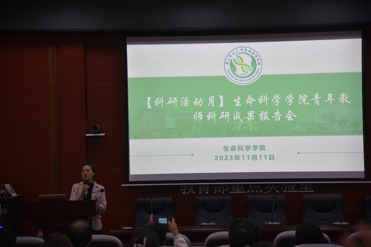2023年11月11日,生命科学学院在第三届“科研活动月”系列活动期间开展中青年教师科研成果报告会,学院分管科研副院长吴琼主持会议,学院100余名师生代表参会。学院特别邀请了刘宗保、蒋骄云、骆海玉、黄锦龙四位青年教师作报告。