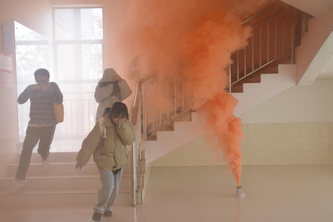 活动伊始,桂林市雁山区消防大队许警官为师生开展了防火知识培训,介绍了火灾形成规律及防范策略、发现火情须“报警、逃生、扑救”三同时措施,强调师生要“四懂四会”,培养“会使用消防器材、会报火警、会扑救初起火灾、会组织疏散逃生”的能力。随后,在伯康楼前广场,许警官向大家介绍消防器材的使用方法,并让学生上场配合操作演练,同学们踊跃参与,分批次上场体验使用灭火器。最后师生在伯康楼和生物学实验教学中心楼进行疏散演练,大家用衣物捂住口鼻,弯腰速行,穿过烟雾,立即撤离,跑到楼外空地处,实验室消防应急疏散演练圆满结束。