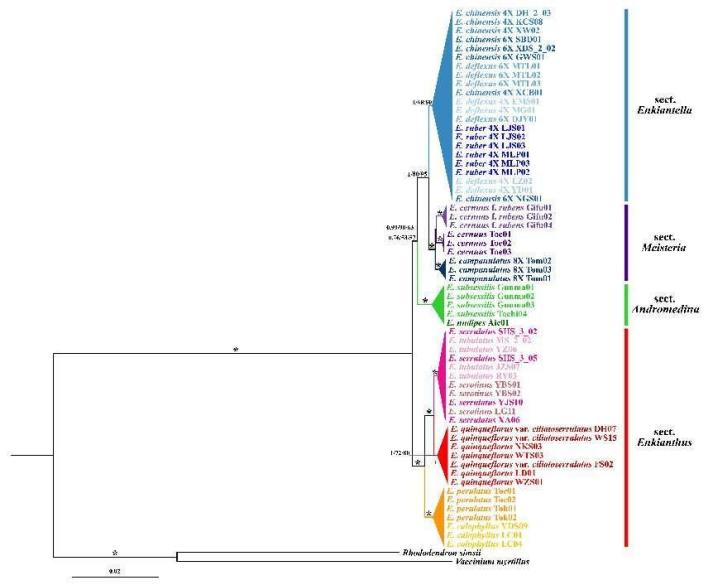 图3 包含二倍体和多倍体的吊钟花属叶绿体基因树
