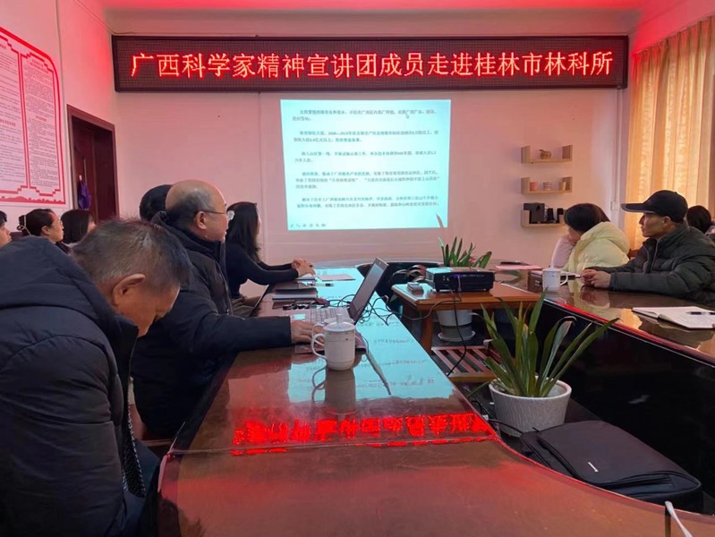 为了将林业新技术新成果尽快推广应用于生产,促进山区乡村产业提质增效,助力乡村振兴,2024年2月26日上午,自治区科技特派员、广西科学家精神宣讲团成员、生命科学学院教授级高工邓荫伟,不顾天气寒冷,深入桂北林业科研单位——桂林市林科所开展林业科技推广宣讲工作,交流分享工作经验,激励基层青年林业科技工作者立足岗位、刻苦攻关、大担探索,为桂北林业产业发展和林业生态建设贡献力量。