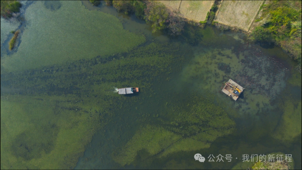 2022年6月,千疮百孔的会仙喀斯特国家湿地公园迎来了生态修复的机遇。项目针对河道、湖塘、岸堤实施了清淤截污、松木桩护岸、有害生物清除等工程措施,以及恢复植被和植物种群,建立生态廊道、生态保育地。全程融入自然修复的理念,采用特色水上施工工艺,材料运输和挖掘机清障打桩等工序都在水中进行,避免破坏河岸生态。
