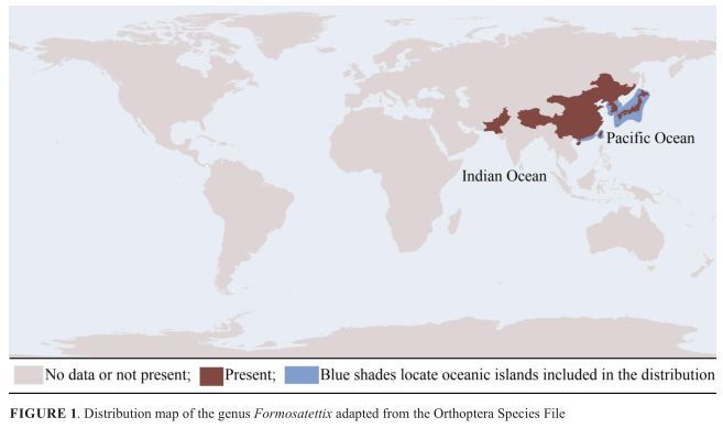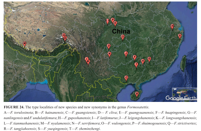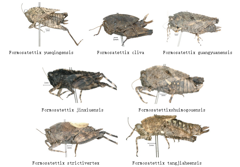 (6)在动物分类权威期刊《Zootaxa》(中科院4区)发表题为“Review of the genus Formosatettix Tinkham (Orthoptera: Tetrigidae) with description of new taxa, new synonymy and an updated key to species”的长篇(42页)研究论文,在世界范围内首次系统修订了无翅蚱类的台蚱属Formosatettix Tinkham 67种。重新厘订了台蚱属Formosatettix Tinkham的属征、分布及分类地位,描述了7个新种;重新命名1种,新组合1种;修订同物异名8种。该研究为蚱类昆虫分类的修订提供了范例。