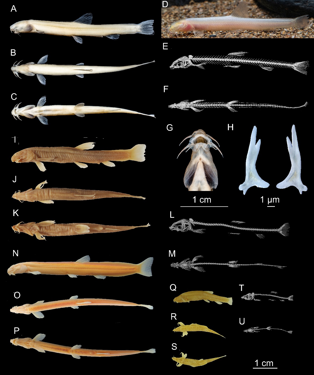 图A–H, 长肋原花鳅; I–K, 无眼原花鳅N–P, 前腹原花鳅. Q–U, 多鳞原花鳅