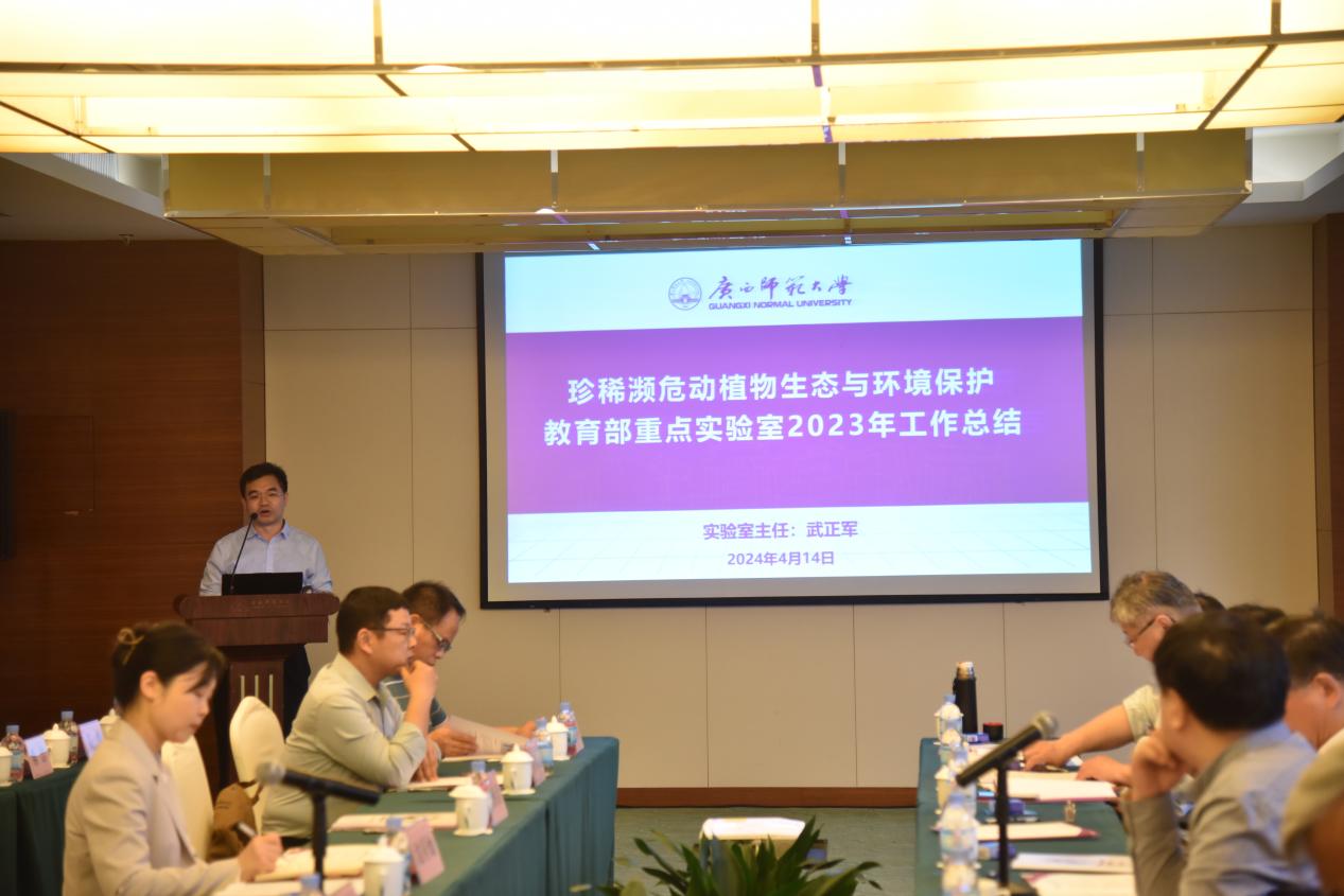4月14日,珍稀濒危动植物生态与环境保护教育部重点实验室2024年度学术委员会会议顺利召开。学术委员会主任、中国科学院武汉水生生物研究所桂建芳院士,学术委员会副主任、吉林农业大学冯江教授,学术委员会委员南开大学周启星教授、北京师范大学娄安如教授、华东师范大学达良俊教授、中国科学院动物研究所黄乘明研究员、中国科学院亚热带农业生态研究所李德军研究员出席会议。校党委书记贺祖斌出席会议并致辞。科技处主要负责人、生命科学学院和环境与资源学院领导班子、实验室室务委员会委员和学术骨干共40余人参加本次会议。
