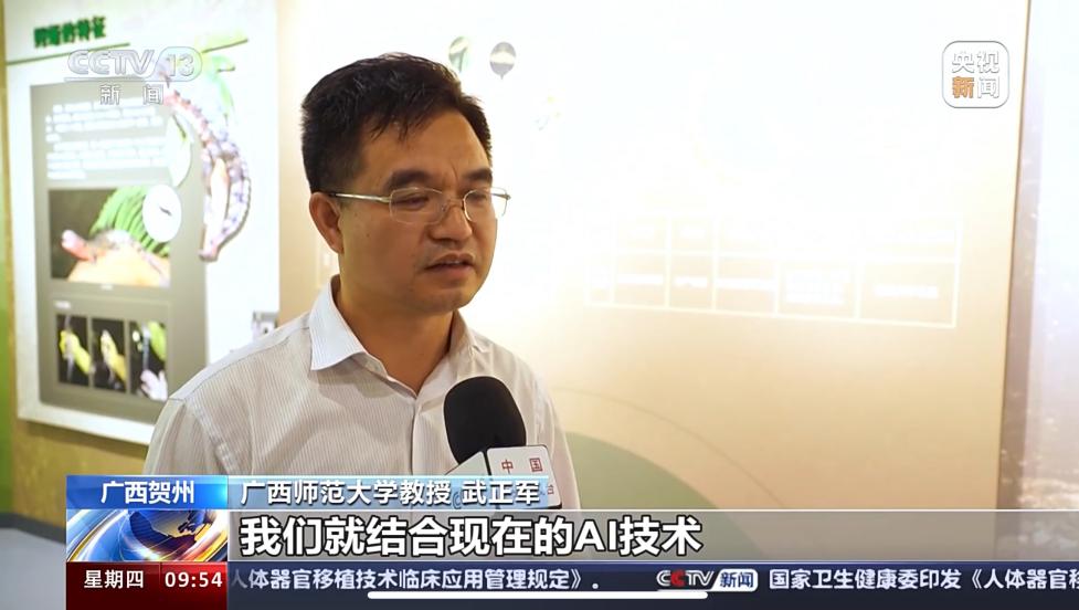 5月22日,值此国家生物多样性日来临之际,全球首个鳄蜥科普研学基地于广西贺州园博园正式启用,生命科学学院武正军教授作为专家受邀参加该基地启用仪式,同时在接受中央电视台采访时,介绍了基于AI技术的鳄蜥尾纹识别研究进展。