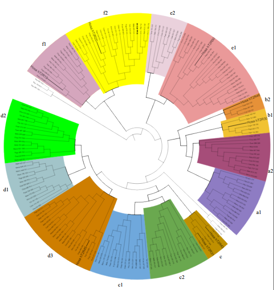 苦味受体在防止动物摄入有毒有害物质方面起重要作用,先前在人与小鼠苦味受体基因家族的进化研究中发现了人类特异性的基因簇与小鼠的苦味受体基因聚一起;此外苦味受体基因数与食性的相关性在同类群物种中存在变化,为探讨支系特异性苦味受体基因在灵长类中的普遍性,以及灵长类苦味受体基因数与食性的相关性问题,本研究以已有基因组序列信息的灵长类物种为研究对象对上述问题进行研究,结果表明,猴科动物存在支系特异性苦味受体基因,苦味受体基因中完整基因的数量与食性存在相关性。该研究在苦味受体基因水平为灵长类的食性适应提供研究基础,目前课题组也开展了蛋白质水平的研究。