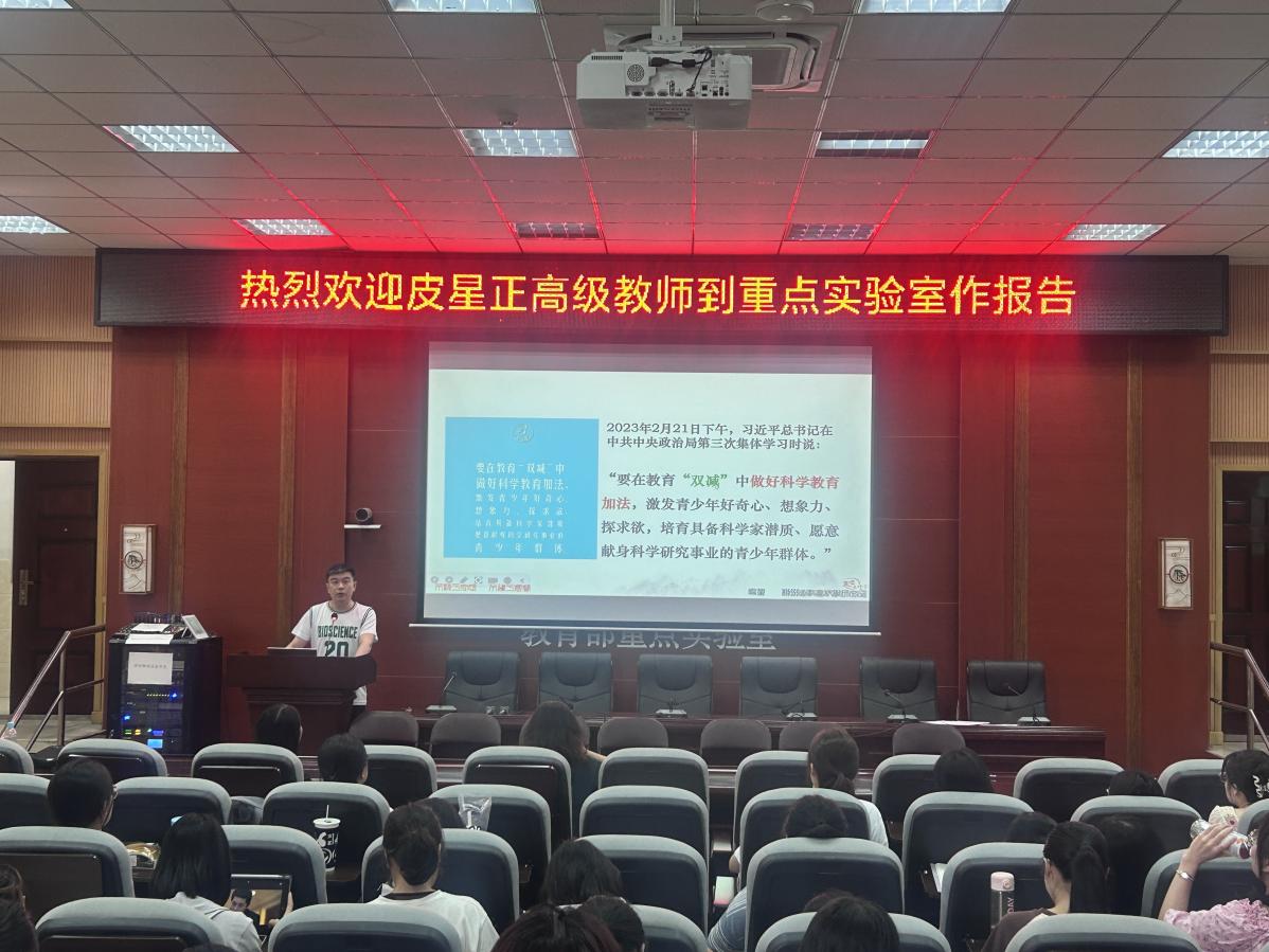 报告会上,何英姿教授进行题为《生物学教师的人文素养与师德》的第一讲。何英姿教授从文化品味、审美情趣、心理素质、人生态度、道德修养五个角度出发,指导同学们如何成为学生喜爱的老师。她强调,作为一名师范生,要不断开阔视野,启迪思维,提高素养,朝着四有好老师的方向努力。皮星老师进行题为《基于“本真·至理·寓情”的科学教育课堂教学研究与实践——以生物学为例》的第二讲。皮老师从AI时代科学教育教师的自我进化和在教学“双减”中做好科学教育的加法两个方面进行讲解。他指出,作为教育者要用“科学的方法”教科学学科以及培养学生“像科学家一样思考”。