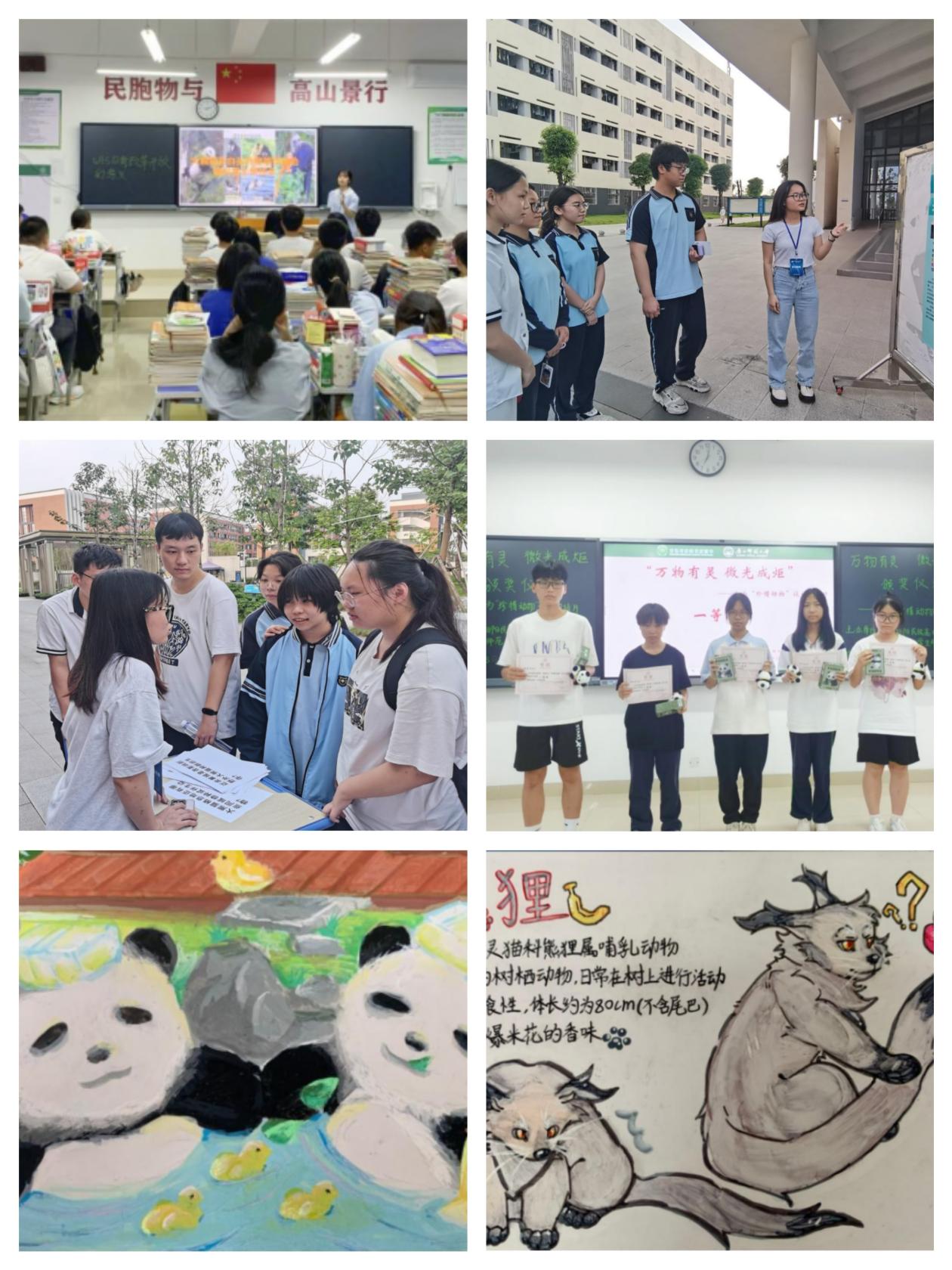依托实习实践基地,系统开展科普育人活动。学院数10名教授以自身研究方向为出发点进行主题科普讲座,内容涉及植物、动物、微生物方面的相关知识,既贴近日常生活,又有科学前沿,充满科学性与趣味性。以主题班会、明信片设计大赛、趣味问答、熊猫科普一条街等形式开展科普活动,通过丰富多样的活动激励中学学生学科学、爱科学、用科学。此外,以丰富多彩的图片展等方式生动直观地向同学们展示各类珍稀濒危动植物,普及生物多样性相关知识,倡导同学们增强环保意识,养成良好的生活习惯,共同保护生物多样性。