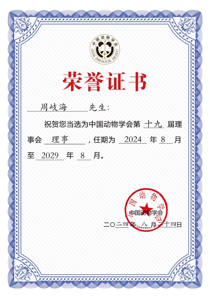 2024年8月23日-24日,中国动物学会第十九届会员代表大会暨第二十六届学术年会、中国动物学会成立九十周年庆祝活动在云南昆明隆重举行。本次大会由中国动物学会主办,中国科学院昆明动物研究所、云南大学、云南省动物学会共同承办,中国科学院动物研究所协办,会议主题为“九十载奋进:动物学的传承与创新”。此次盛会吸引了来自高校、科研院所等206个单位的1100余名动物学界的专家、学者及相关领域的科技工作者、学生代表参会,共同见证了中国动物学会成立90周年的辉煌时刻。我院武正军教授、周岐海教授、范鹏来副教授参加本次盛会,武正军教授和周岐海教授成功当选中国动物学会第十九届理事会理事。