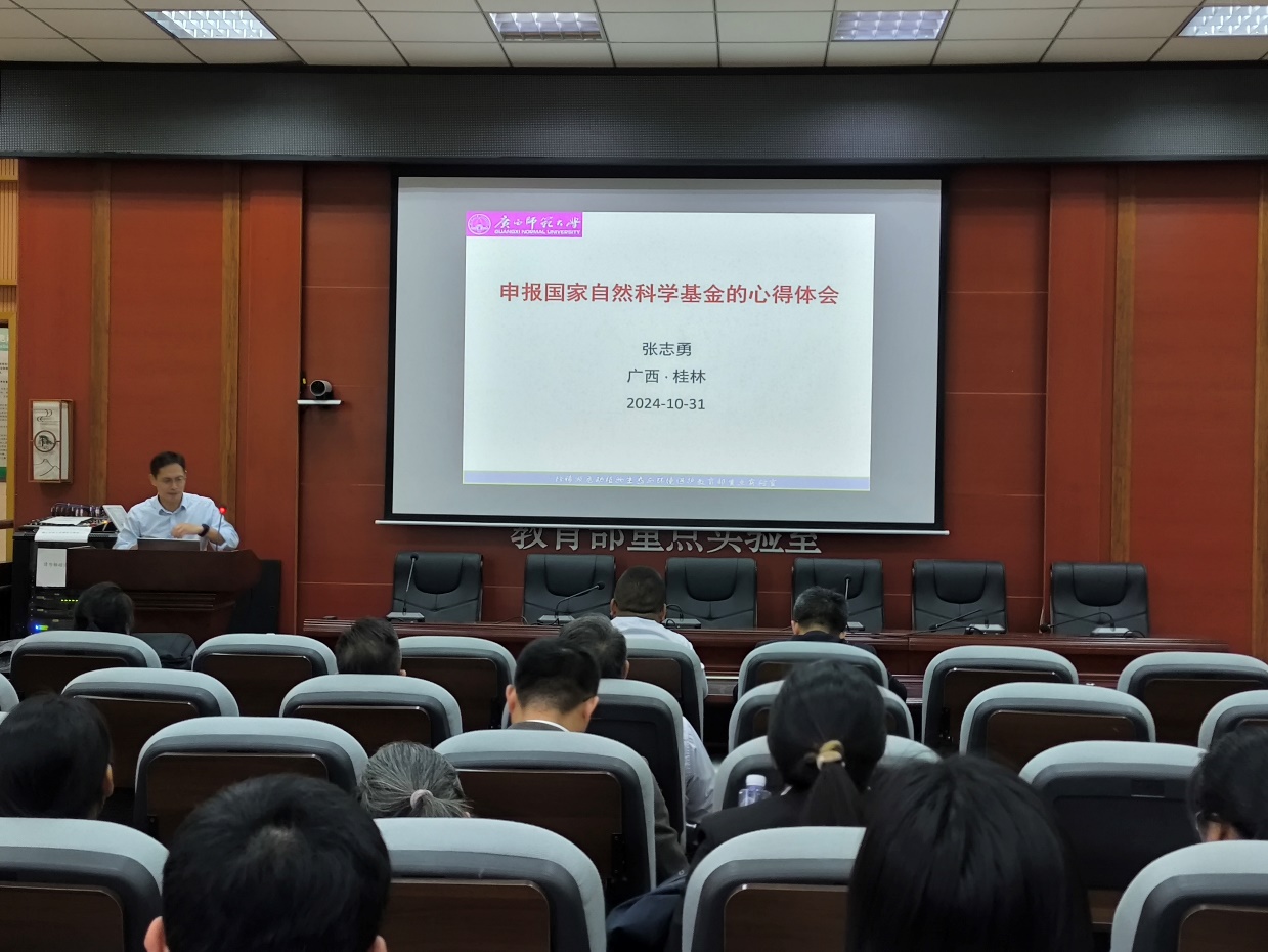 会议上,学院张志勇教授分享了“申报国家自然科学基金的心得体会”。张老师依据国家自然科学基金申请书的内容框架,通过大量案例逐条分享各部分内容的撰写要点,让参会的老师们获益匪浅。