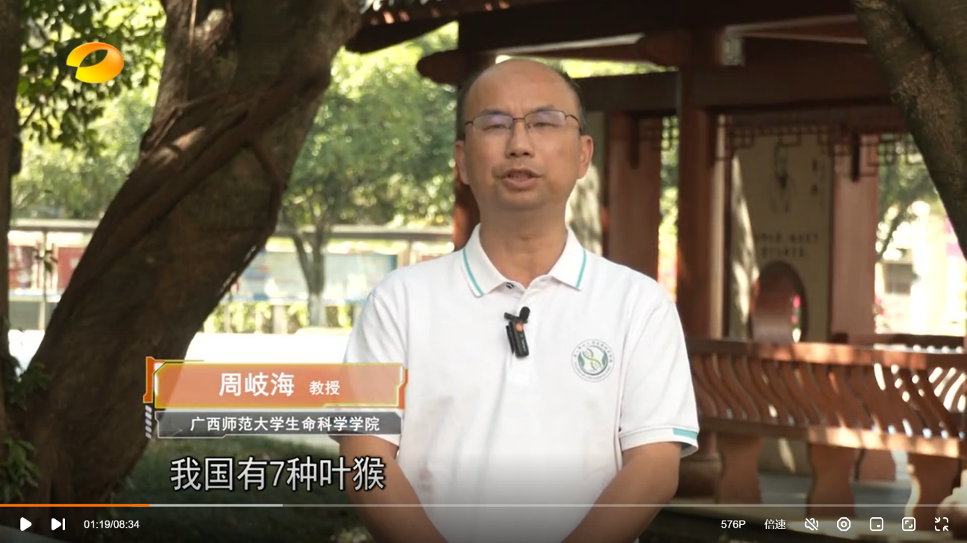 11月1日,湖南卫视《新闻大求真》栏目播出由我校生命科学学院周岐海教授参与拍摄的科普节目《白头叶猴的习性是什么?》。节目中,周岐海教授详细讲述了白头叶猴的特征、生活习性和濒危现状。湖南卫视《新闻大求真》栏目是一档全民科普节目,栏目与国内顶级实验室合作,以大型现场实验为主,结合权威专家解读,为观众普及身边的科学,解答生活的疑惑,传递正能量。每期节目收视规模约为5000万观众,曾荣获中国新闻奖名专栏一等奖。