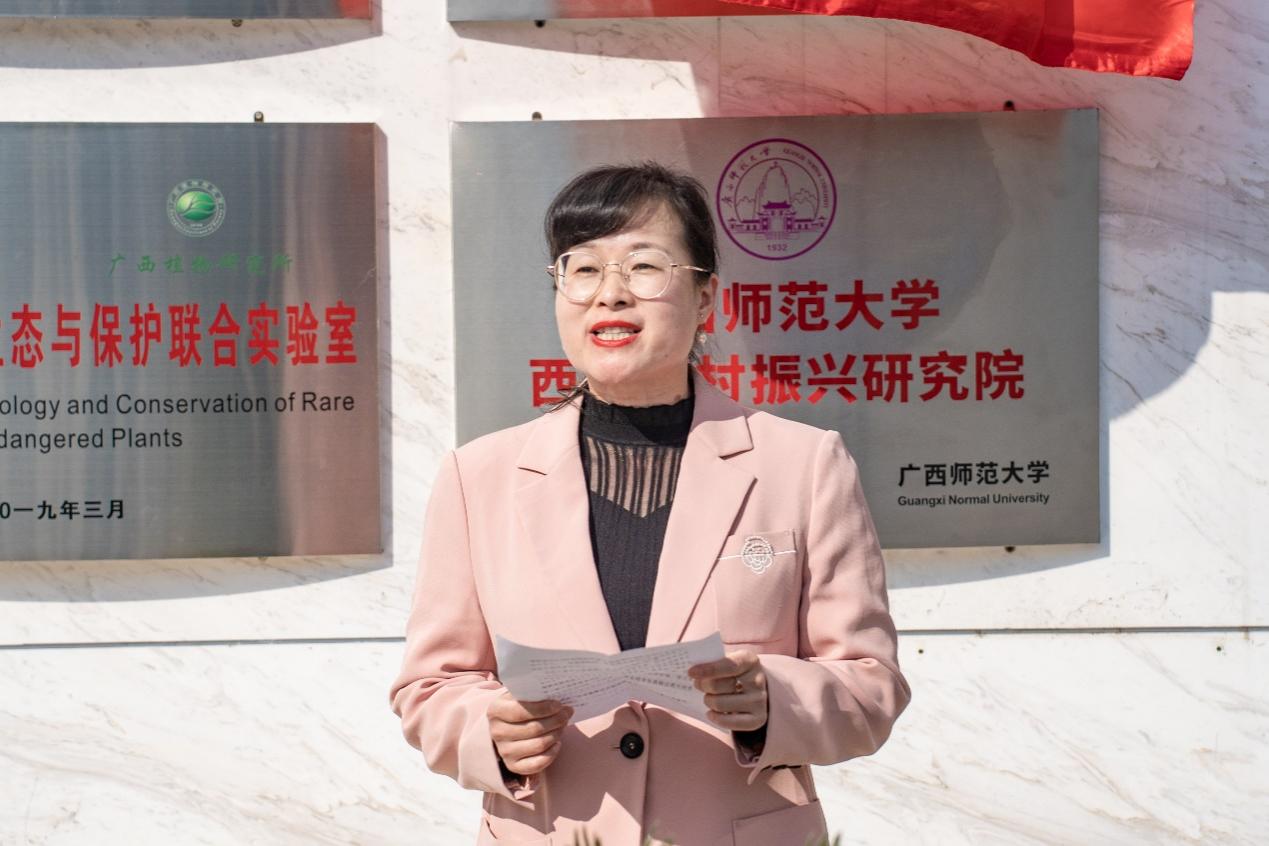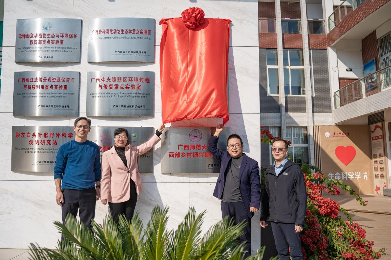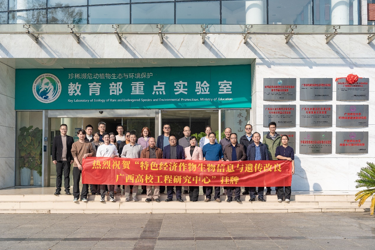 2024年12月3日,特色经济作物生物信息与遗传改良广西高校工程研究中心揭牌仪式在广西师范大学伯康楼前举行。学校科技处副处长、学校科技处平台科科长,学院党委主要负责同志、学院分管科研工作的副院长以及分管研究生工作的副院长等出席了揭牌仪式。