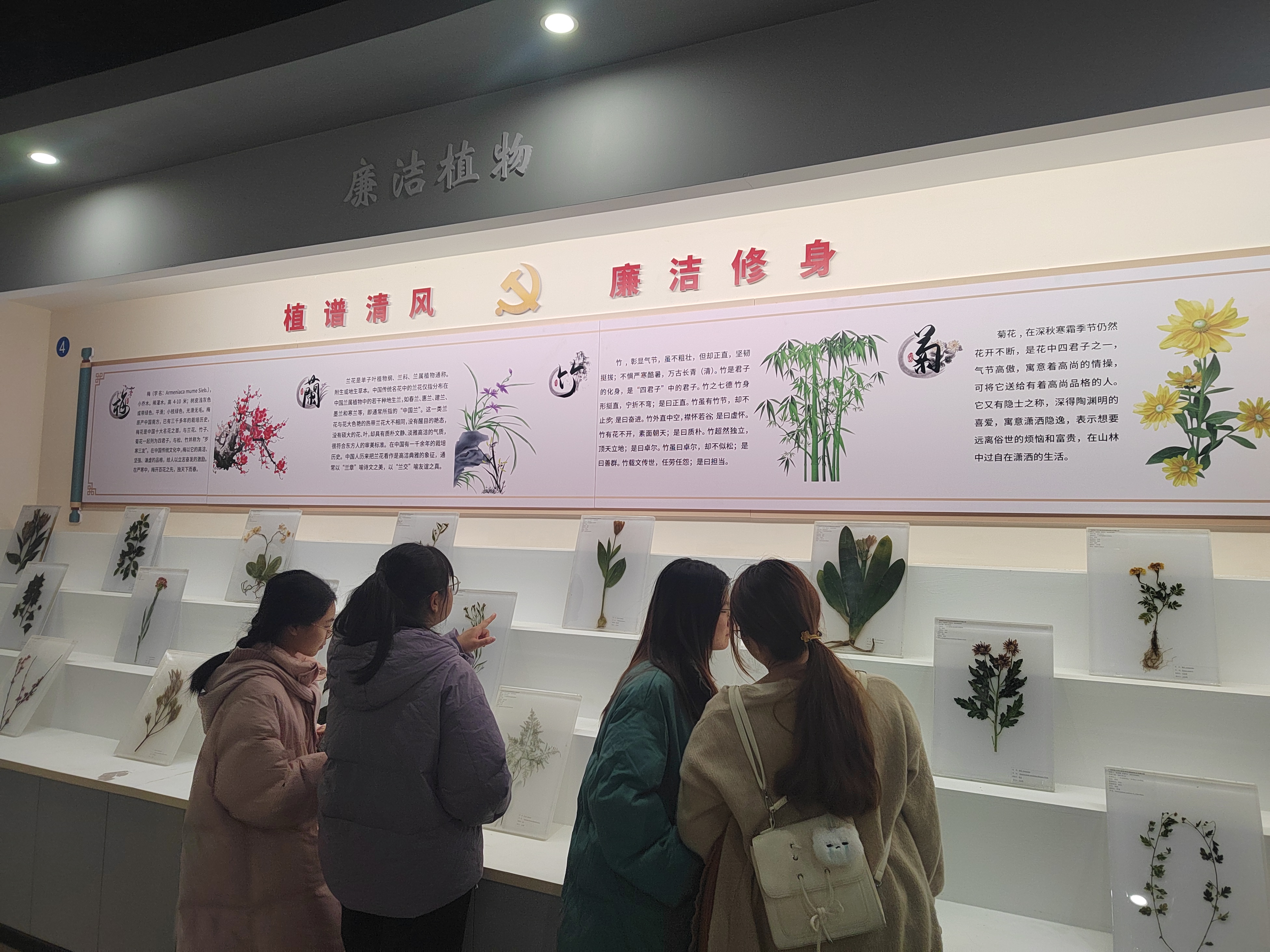 在讲解员的引领下,入党积极分子们参观了“植谱清风”廉洁文化教育基地。通过观看廉洁植物标本,了解廉洁植物寓意,感悟廉洁文化内涵。成员们认真观看,不时驻足思考,相互交流心得感悟,现场学习氛围浓厚。