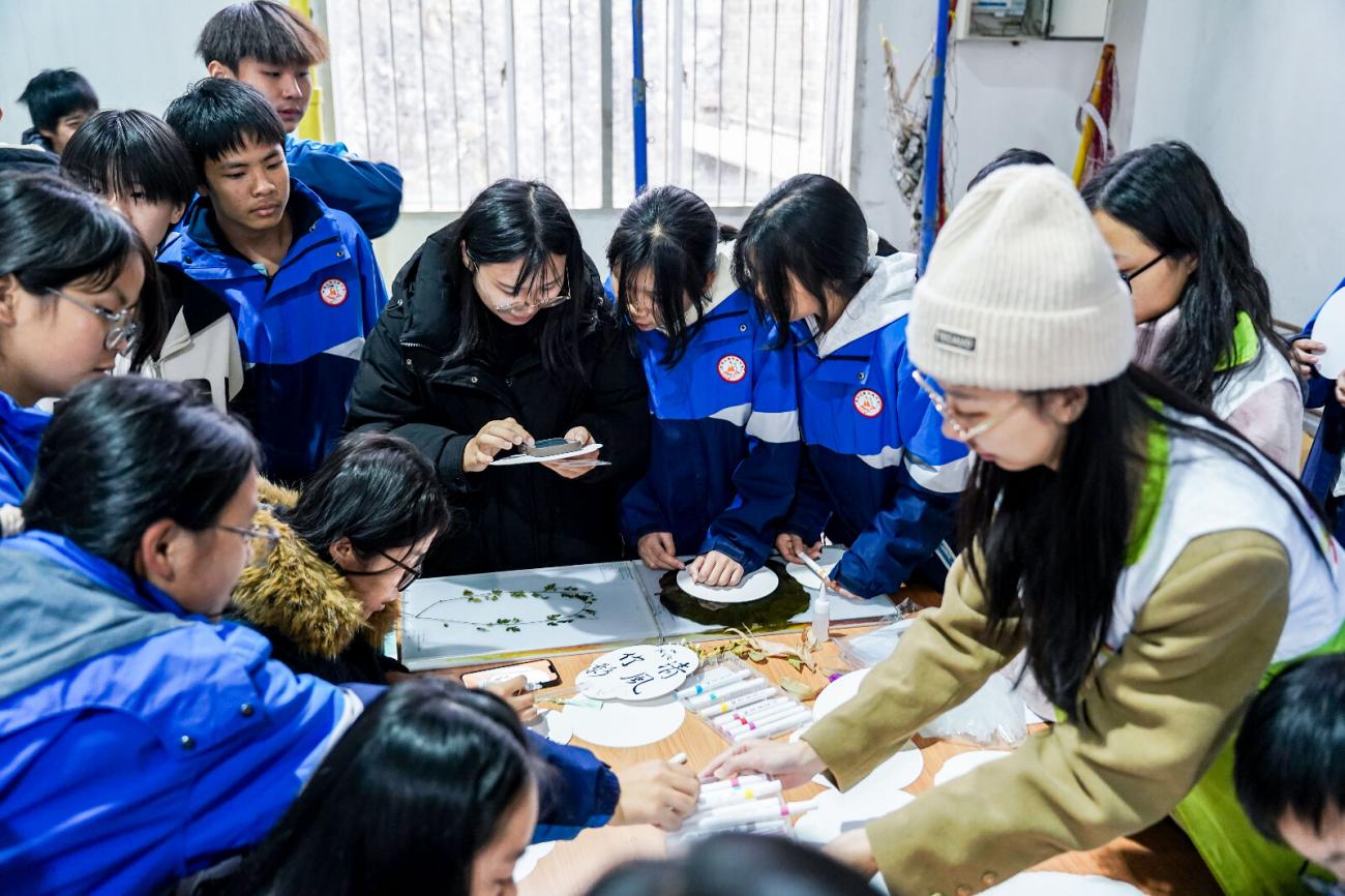 师生参与廉洁团扇绘制活动