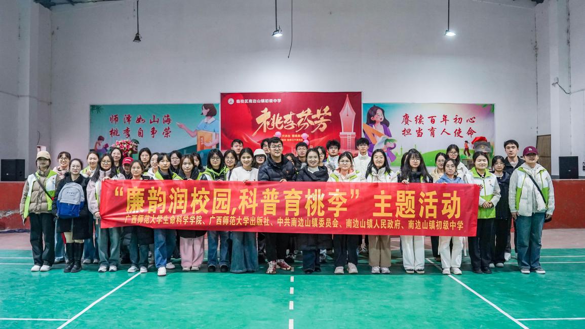 为进一步落实落细立德树人根本任务,用廉洁文化铸魂育人,2024年12月9日,广西师范大学生命科学学院与南边山镇党委、政府和南边山镇初级中学联合开展“廉韵润校园,科普育桃李”主题活动。广西师范大学党委副书记、自治区纪委监委驻学校纪检监察组组长莫坷,生命科学学院党委主要负责同志,南边山镇政府主要负责同志,临桂区教育局相关负责人,南边山镇初级中学党政主要负责人出席活动,生命科学学院师生代表及南边山镇初级中学学生代表共300余人参加活动。